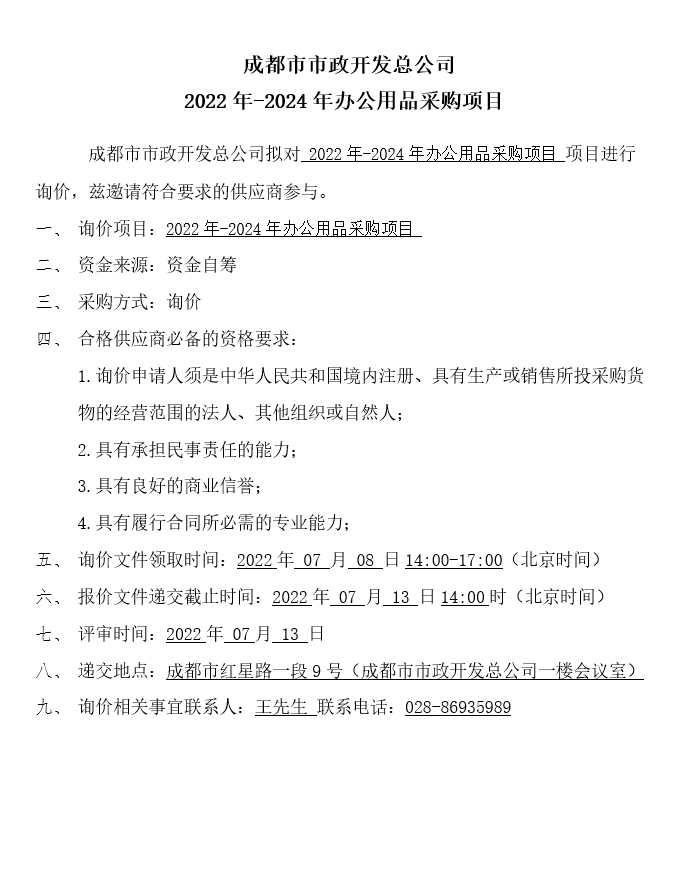 jS333金沙线路2022年-2024年办公用品采购项目