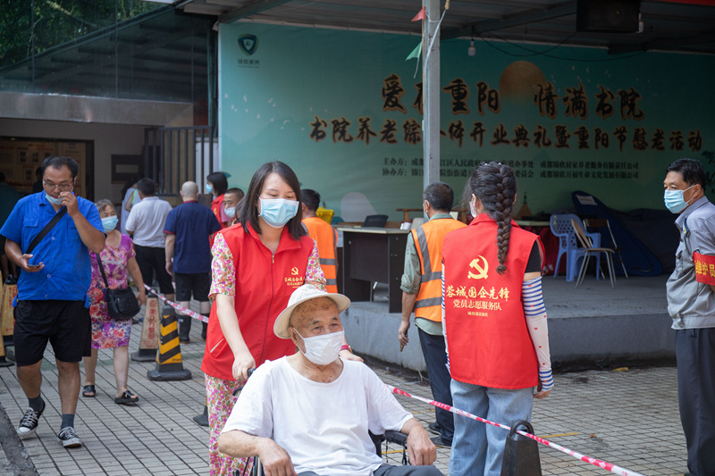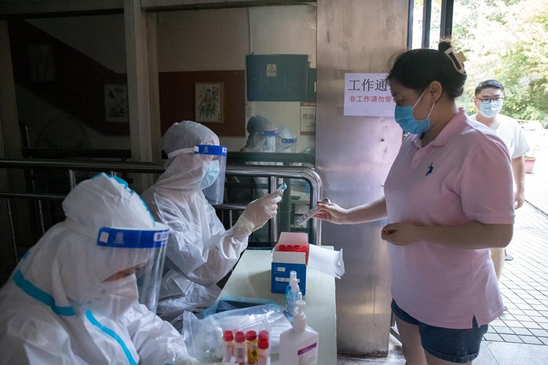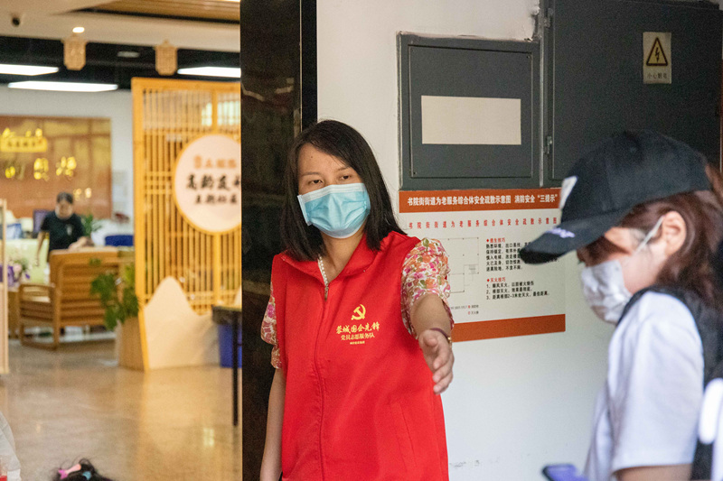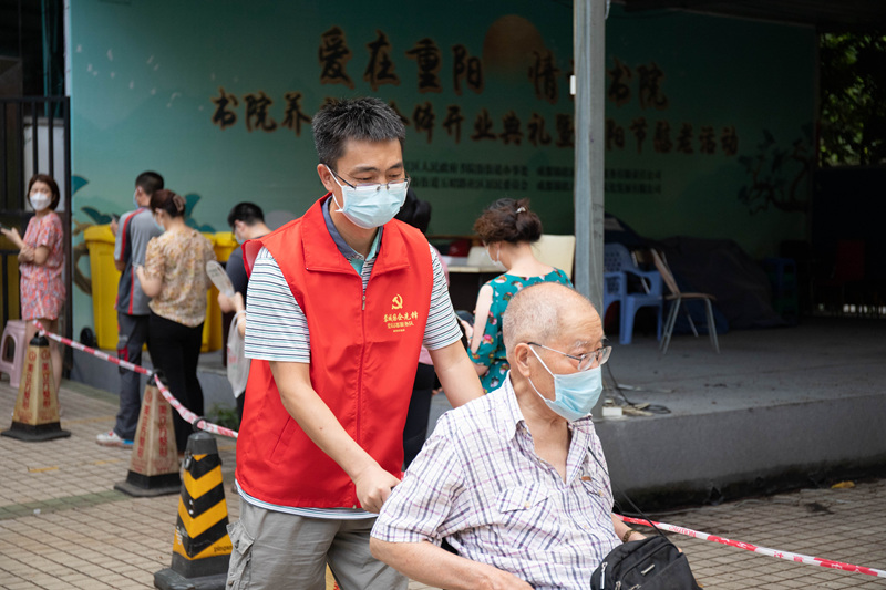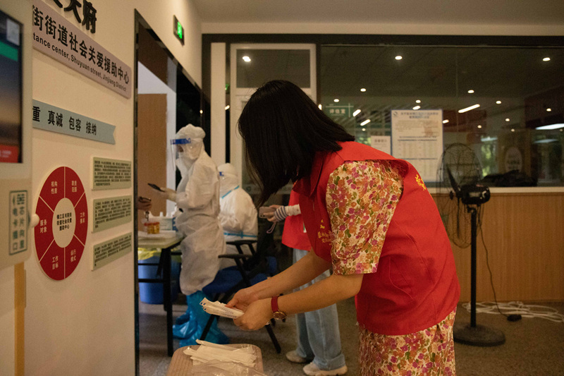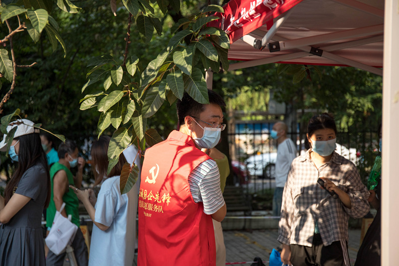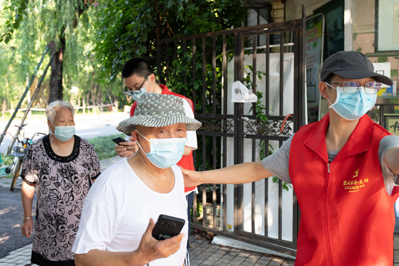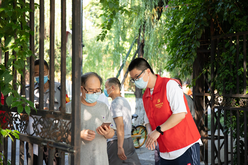 下午16时,在社区工作人员的指挥下,大家两两组队、分工协作、配合默契。有的在大门负责提示大家亮健康码、扫场所码;有的负责维持院落队伍秩序,组织陆续到来的群众排好队列,根据现场人数设置绕行通道;有的负责在检测点引导分流人员;有的协助检测人员,负责协助医护人员采集核酸检测信息,发放一次性取样器;有的作为机动人员,为行动不便的人员、80岁以上的老人和带婴幼儿小孩的市民提供贴心服务。