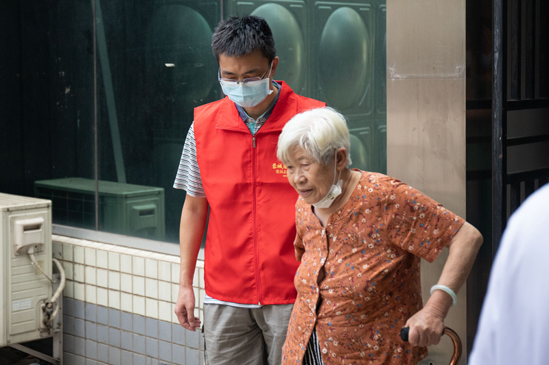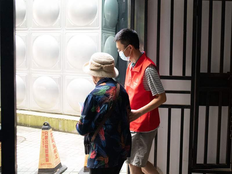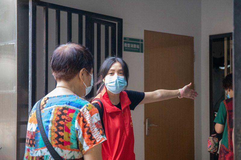 “大爷(大妈)您好,您腿脚不好,您从这个通道,可以直接进去做核酸,可以快点。”