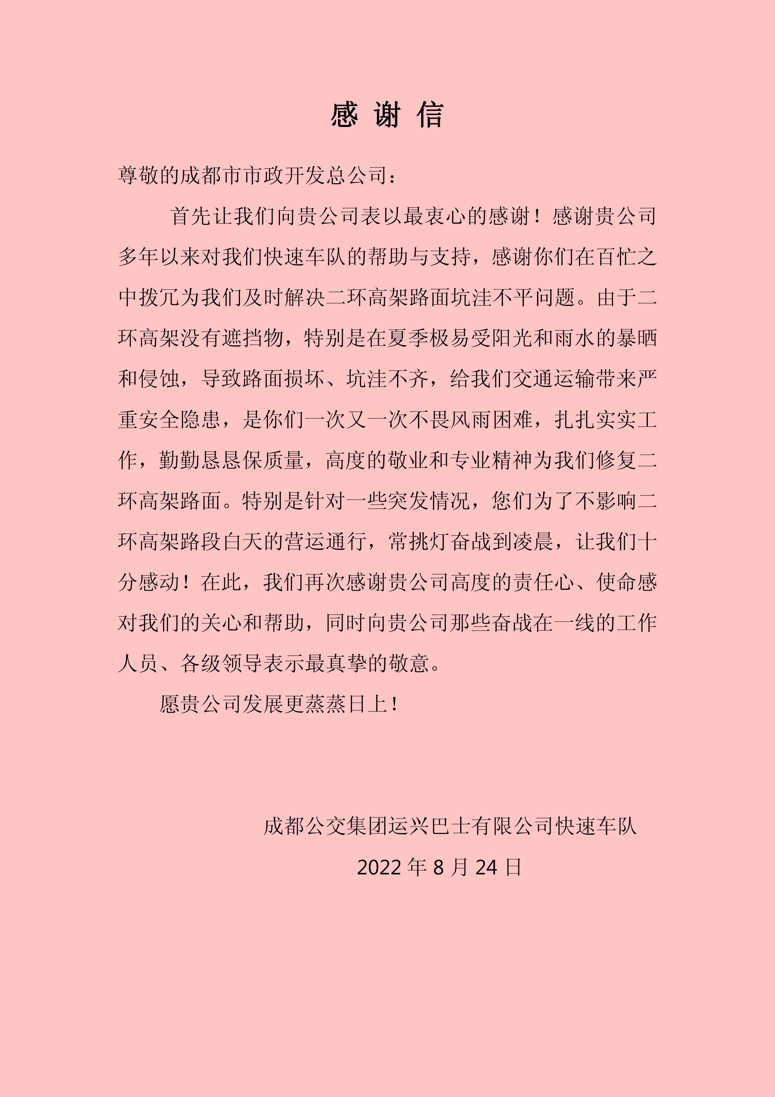 一份感谢信,