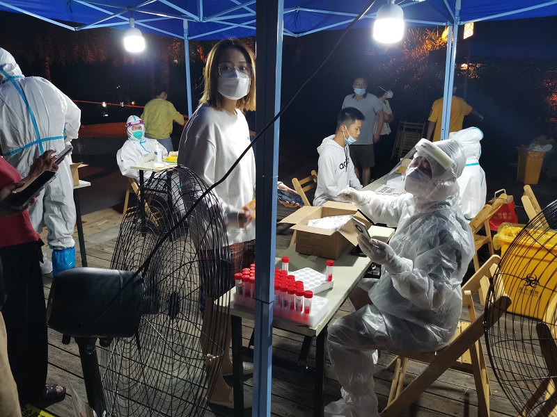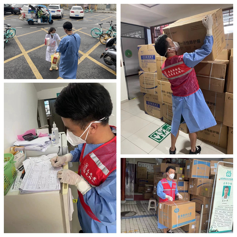 由于社区卫生服务中心医疗人员大多进入小区采集核酸,卫生服务中心处于人员紧缺的状态,为了保障核酸检测工作的顺利进行,汤进每天都是长时间、满负荷的工作状态。每天检测开始前,他负责向各点位分发放防疫和核酸检测物资;检测进行中,他要根据各点位需求随时提供物资支援,同时,还要将各点位收集的核酸标本转运至卫生服务中心进行整理、登记和存储,每天下午16时至24时,汤进频繁地在各个小区的检测点往返奔波。