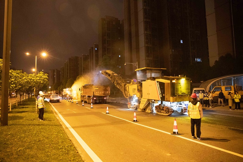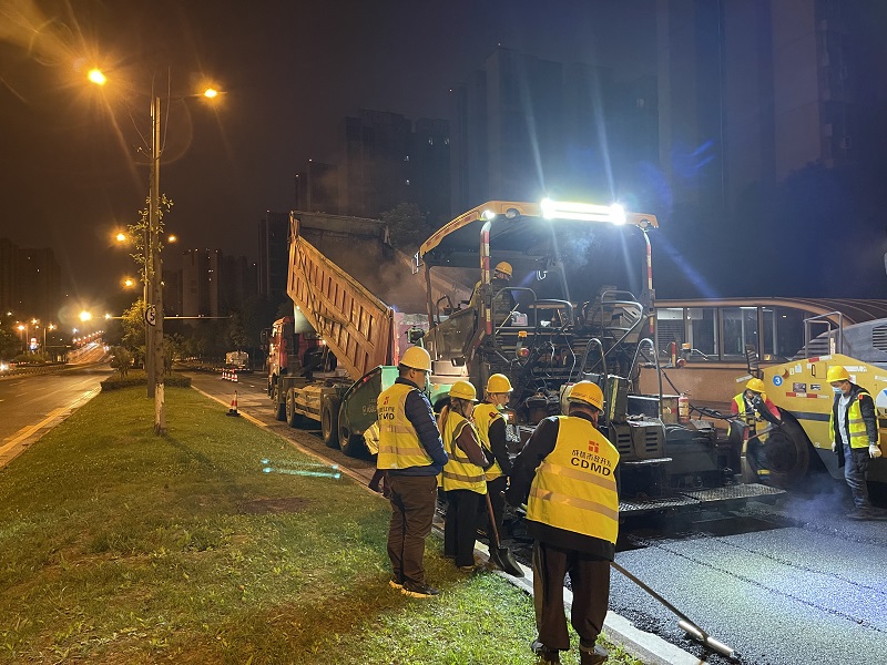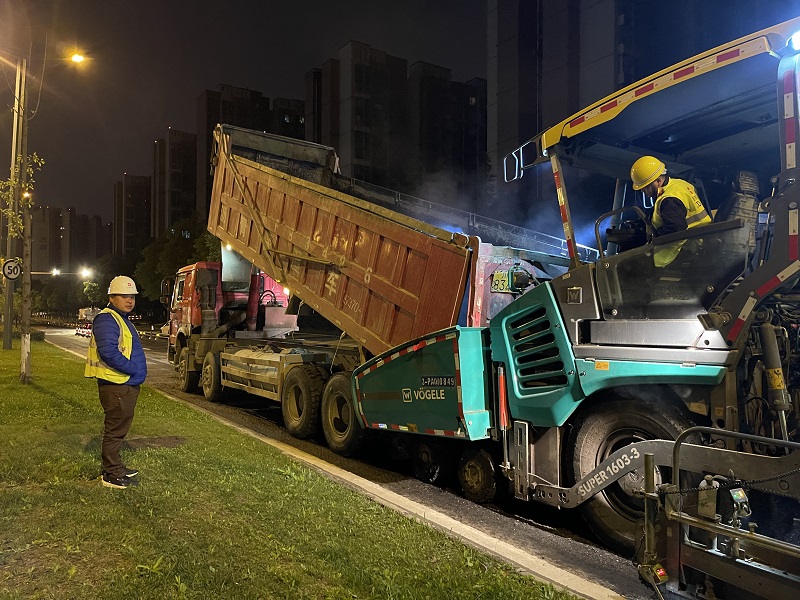 2022年10月10日夜间,jS333金沙线路中标承建的红星路南延线(蝴蝶桥-区界)路面降噪工程正式开工建设。