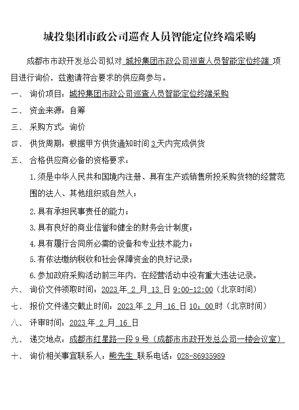 城投集团jS333金沙线路巡查人员智能定位终端采购询价结果公示
