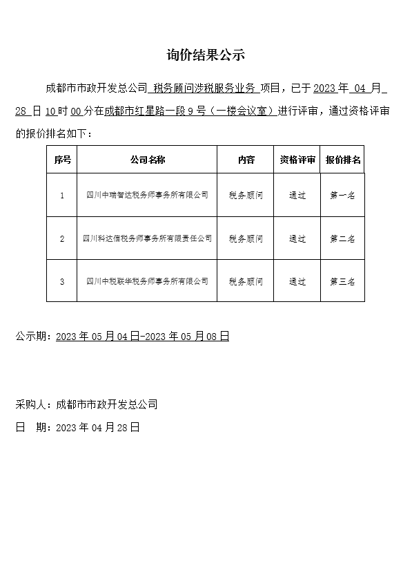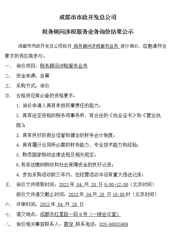 jS333金沙线路税务顾问涉税服务业务项目询价结果公示