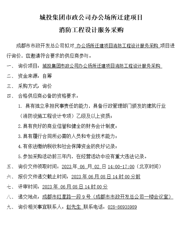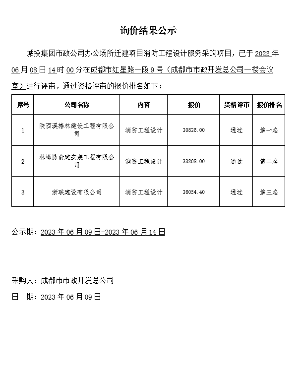 城投集团jS333金沙线路办公场所迁建项目消防工程设计服务采购询价结果公示