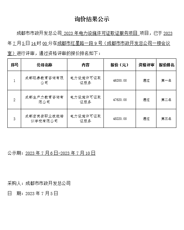 jS333金沙线路2023年电力设施许可证取证服务项目询价结果公示