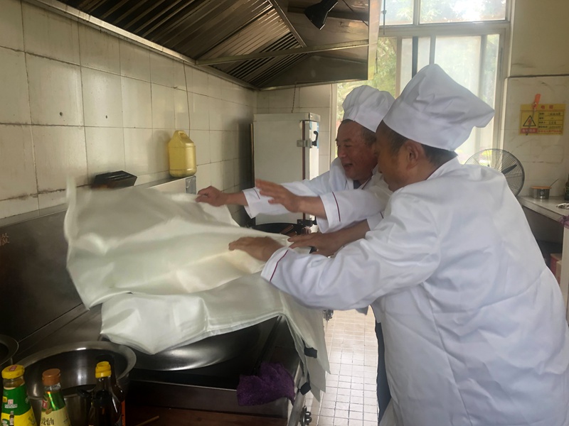 下午13时,综合演练正式开始。首先是消防演练,现场点火组、灭火组、应急组各司其职,各场站人员轮番上阵,分批次使用灭火器进行灭火操作。随后,在食堂模拟了油锅起火事故,演练中,厨师及辅助人员使用灭火毯由外向里覆盖着火油锅,迅速将火情控制并启动油烟机进行通风换气。