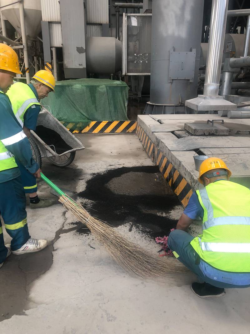 最后开展突发环境事件应急演练。拌合站员工在进行沥青装卸作业时,没有提前查看好罐体内是否存有沥青,导致沥青罐冒罐,为防止沥青泄漏污染土壤和地下水,生产工人立即报告给站长,站长决定启动突发环境事件应急预案,各站点应急救援小组迅速带着沙袋、铁铲、应急收集桶、等物资前来处理,成功控制这起突发环境事件,避免对园区及外部环境造成更大破坏。