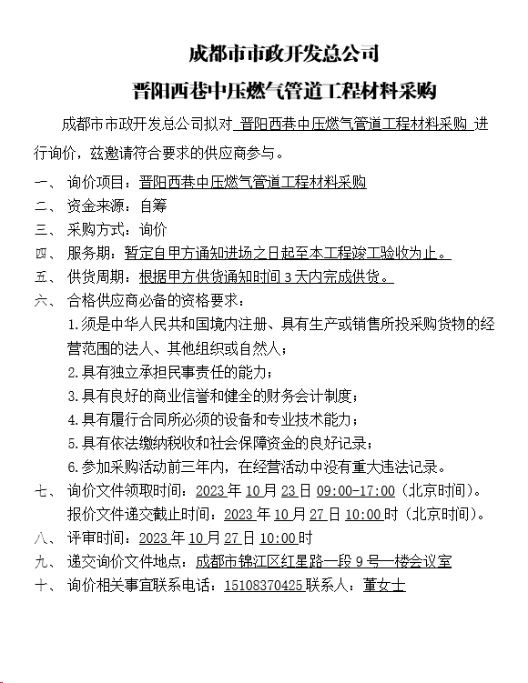 jS333金沙线路晋阳西巷中压燃气管道工程材料采购