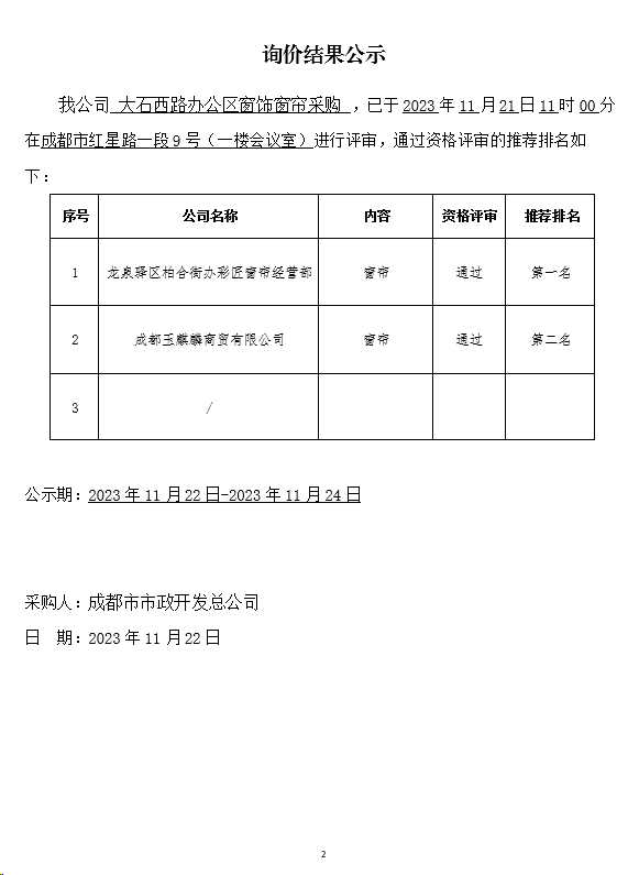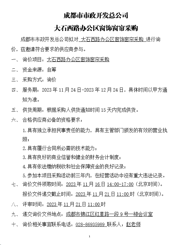 jS333金沙线路大石西路办公区窗饰窗帘采购询价结果公示