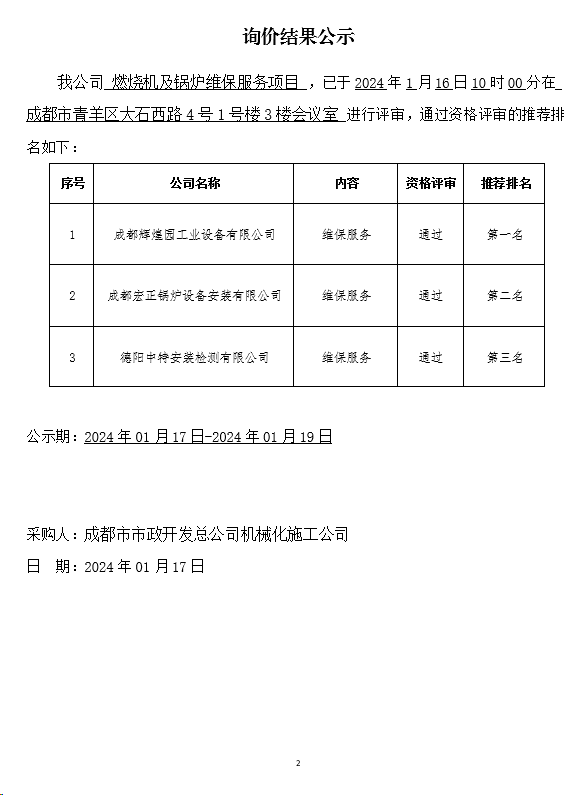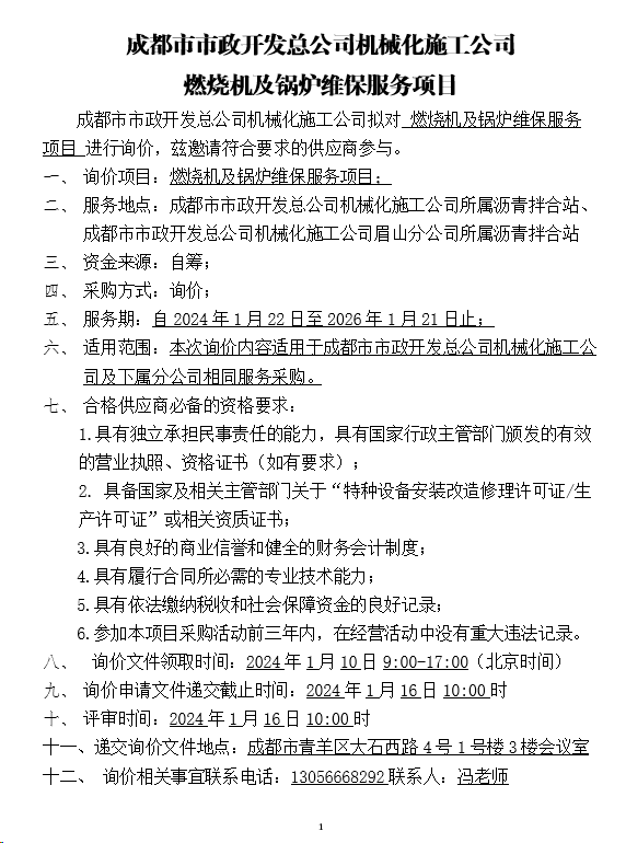 jS333金沙线路机械化施工公司燃烧机及锅炉维保服务项目询价结果公示