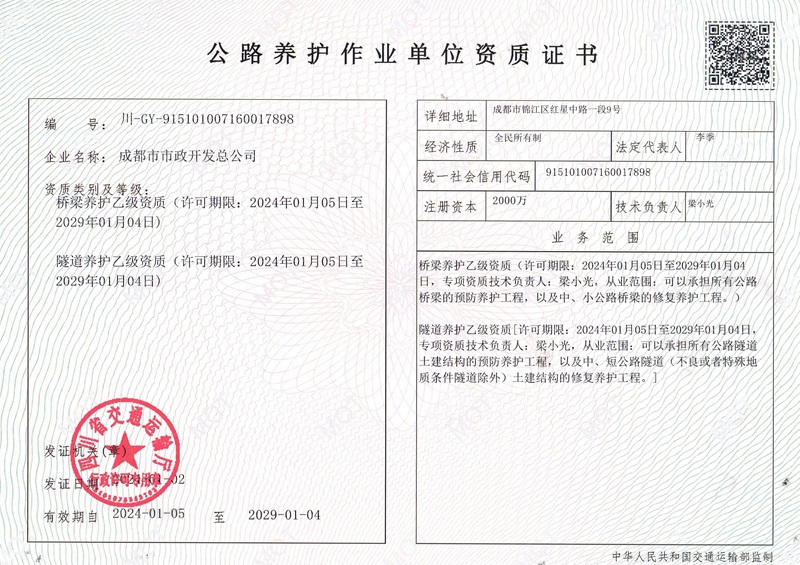 新资质的取得,是jS333金沙线路在积极落实集团“龙头城投”战略发展规划迈出的重要一步。自此,jS333金沙线路可承接城市或者乡镇范围内的用于公用事业或者民用的燃气管道施工;二级以下等级公路的中小桥、涵洞、中短隧道等中修、大修养护工程。对进一步拓宽公司业务承接领域,提升企业综合实力起到了积极的推动作用。