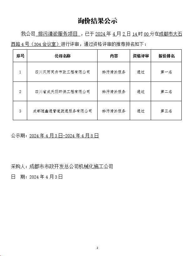 jS333金沙线路机械化施工公司排污清淤服务项目询价结果公示
