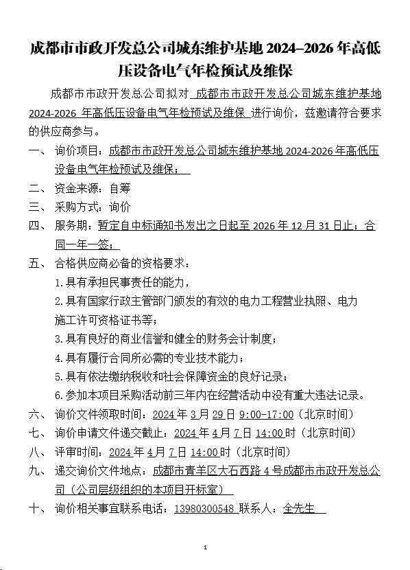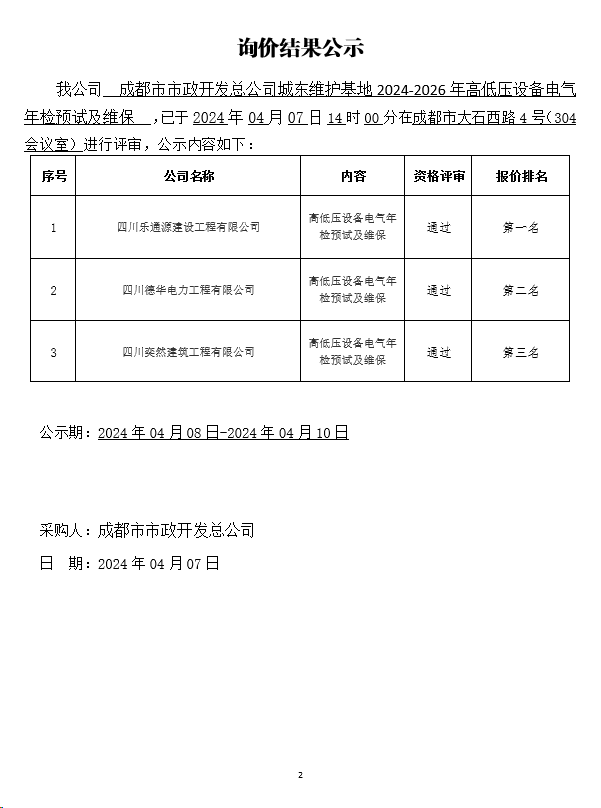 jS333金沙线路城东维护基地2024-2026年高低压设备电气年检预试及维保询价结果公示