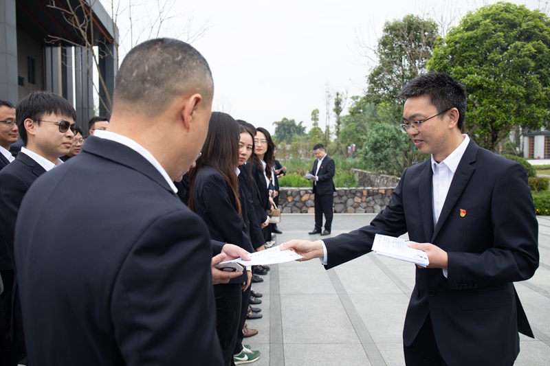 在讲解员的带领下,大家走入家风馆,依次浏览“先贤家风”“红色家风”“当代家教”“时代新家”等展厅,体验参观“战地家书剧场”“杨氏家风文化体验厅”两个专题展厅。一段段家训、一封封家书、一张张照片,透过蜀地先贤、革命先辈、时代模范修身齐家、大公无私的动人故事,让党员干部们感受到历代家风发展脉络与精神内核,从优秀家风文化中汲取养分、接受教育。同时,党员干部们还深入了解党的十八大以来习近平总书记关于家教家风建设的重要论述和四川省家风建设情况,更准确领悟新时代家风要求。活动现场,党总支书记秦泰、总经理李季为大家发放“清风筑梦 廉洁齐家”倡议书48份。