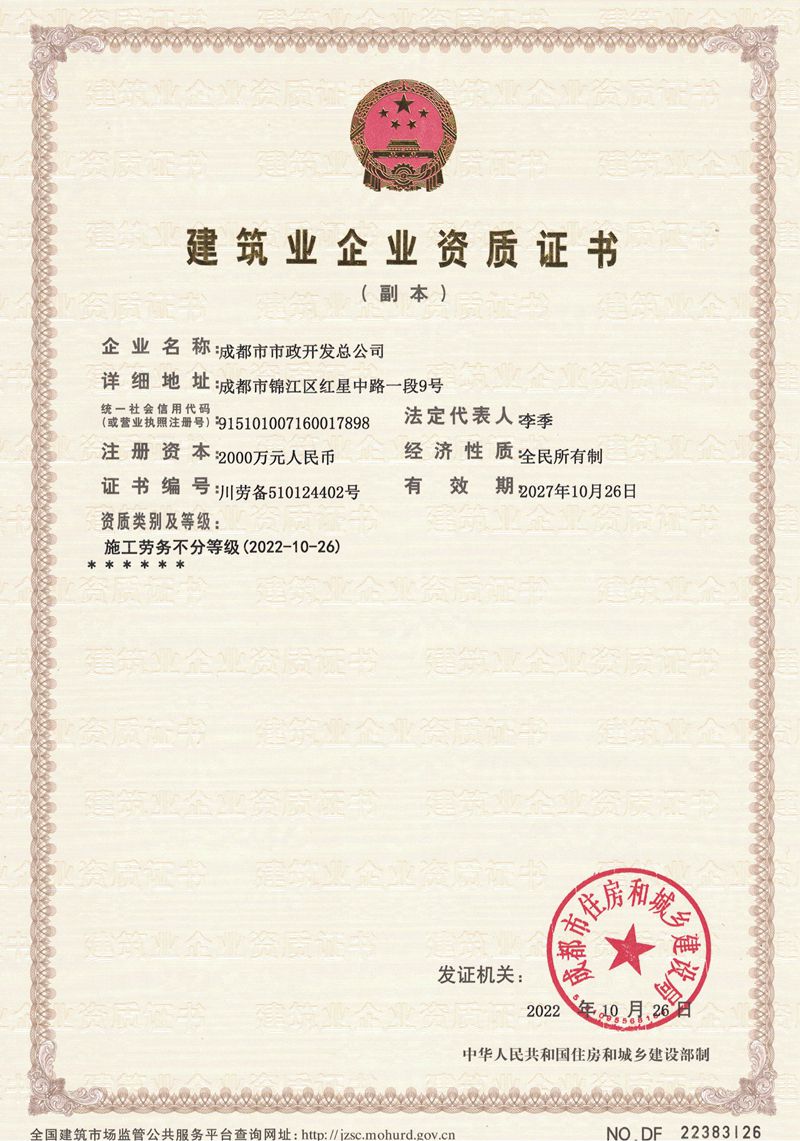 资质证书:市政公用工程、公路交通工程、城市及道路照明工程、环保工程、建筑装饰装修工程、公路交通工程、机电工程、公路路面工程、公路路基工程