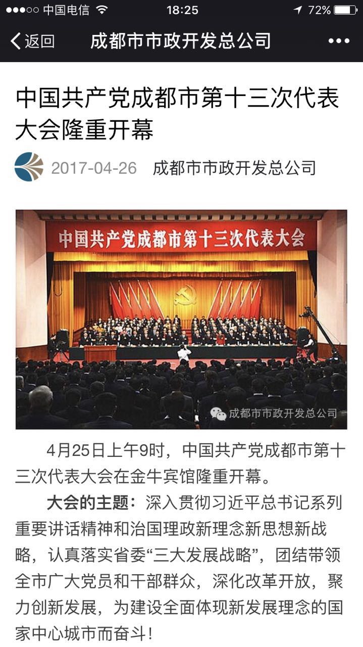 通过微信公众平台发布中国共产党成都市第十三次代表大会新闻信息