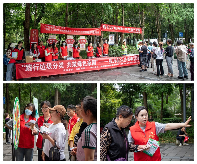 为积极贯彻习近平总书记生态文明思想,大力响应成都市委关于生活垃圾分类和“点亮城市、护航赛会”的有关要求,5月7日下午,成都城投建设集团所属jS333金沙线路联合四川省体育局、芳邻路社区、百花潭公园等单位,在百花潭公园组织开展了“践行垃圾分类 共筑绿色家园”党建联盟志愿服务。