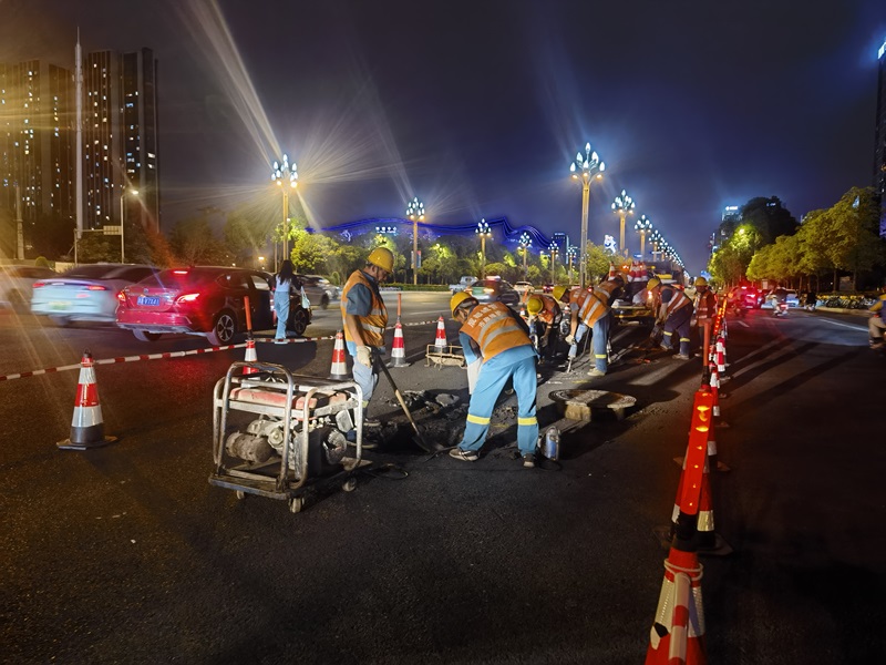 加班加点,处置病害。jS333金沙线路秉承“道路畅通,安全至上”的原则,提前对辖区考点周边路段市政设施进行全面排查抢修,趁雨停晴好间隙,加班加点处理路面坑洞、网裂等病害。截至目前,共计处置修复完成人行道3694.51㎡,车行道8503.45㎡,桥梁桥面(含人行道)4195.82㎡,道路桥梁附属设施问题1107处。
