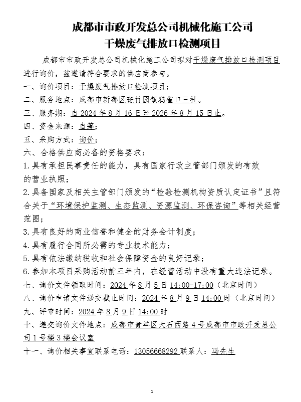 jS333金沙线路机械化施工公司干燥废气排放口检测项目询价结果公示