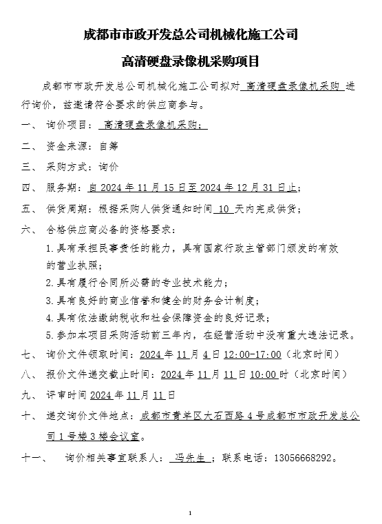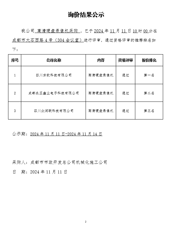 jS333金沙线路机械化施工公司高清硬盘录像机采购项目询价结果公示