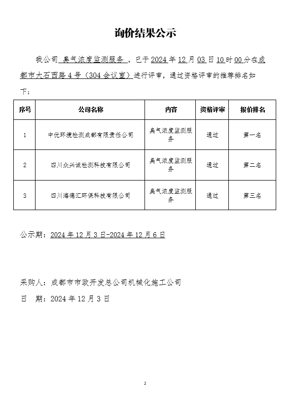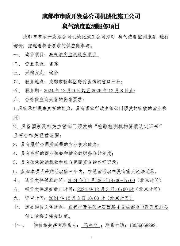 jS333金沙线路机械化施工公司臭气浓度监测服务询价结果公示