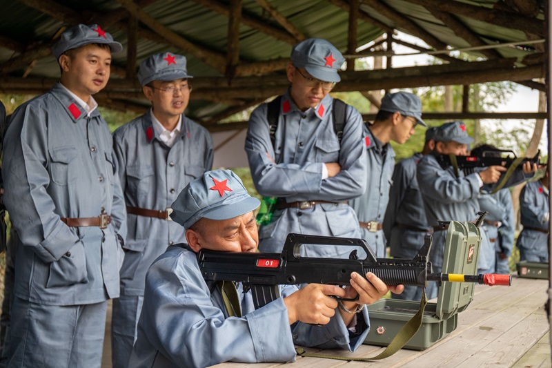 下午,大家移步来到“军魂永恒”主题公园。大家先后参观了习风堂书院、长征微展馆、红色记忆馆等展区,了解了四川红军在长征途中鲜为人知的艰辛故事。随后,通过身临其境“重走长征路”、激光打靶等活动,沉浸式体验了飞夺泸定桥、强渡大渡河、翻雪山过草地等战争场景,深刻感悟长征精神和百年党史,赓续革命先烈艰苦奋斗、自力更生的伟大精神。