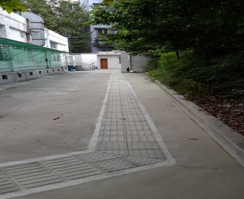 修复后的混凝土盲道 清洗宿舍楼橡胶盲道