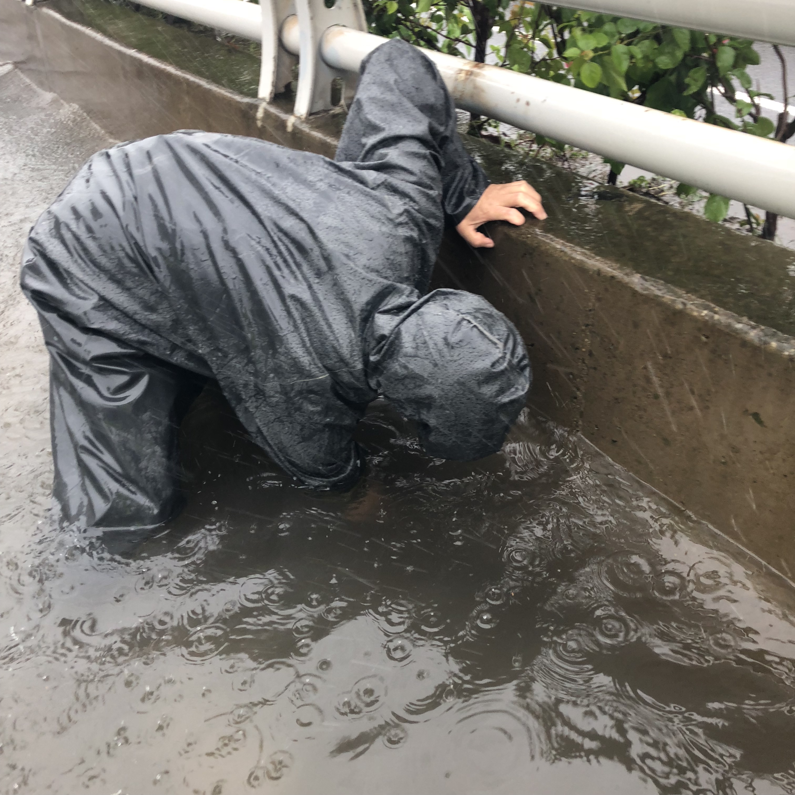 面对齐膝深的积水,他们没有犹豫,一次又一次俯身在冰冷的水中,只为快速清理道路积水,使其恢复通行能力。