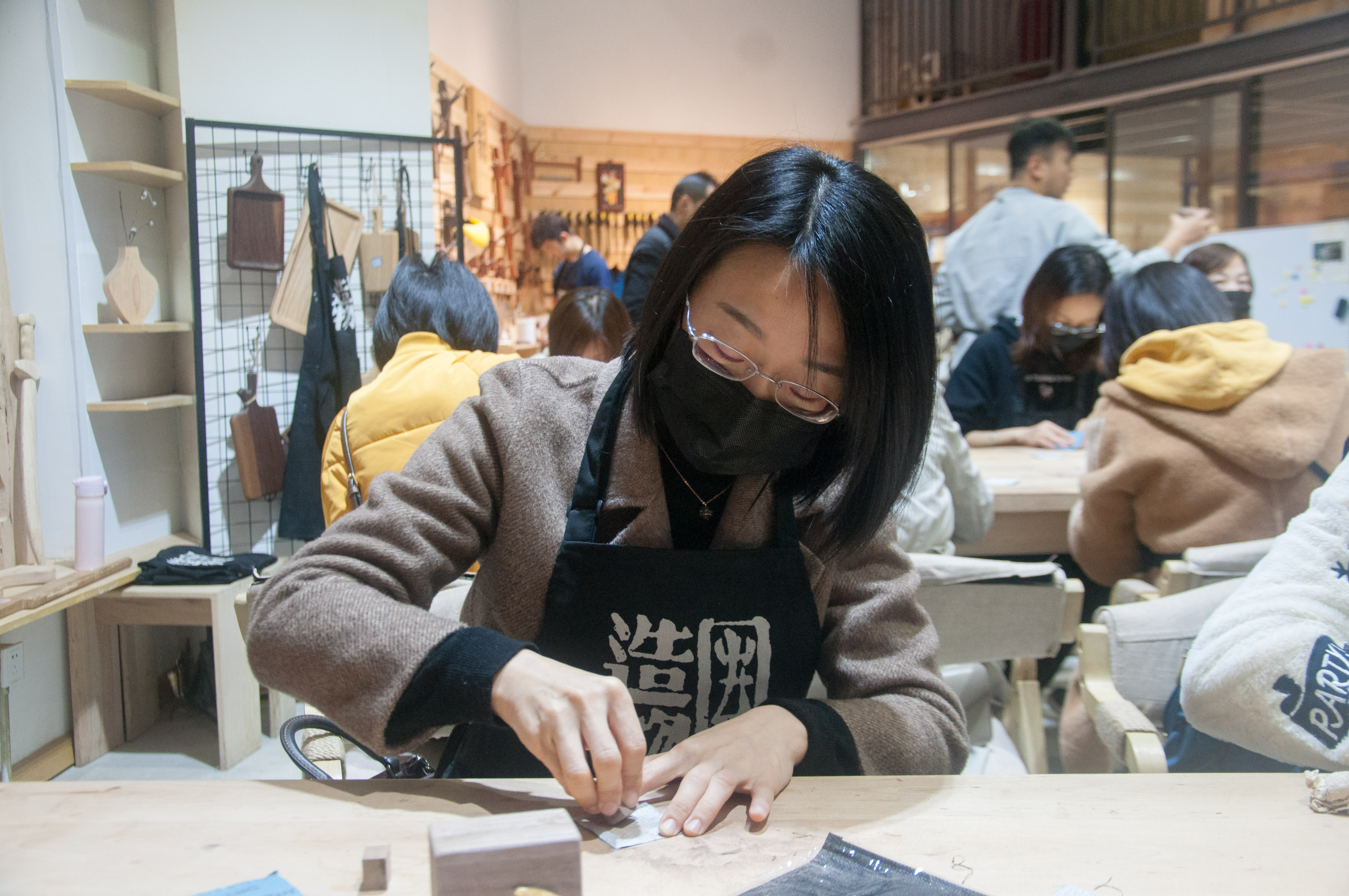 活动现场,大家穿上围裙,戴上口罩,挽起袖子,在老师的演示下,自己动手做起了八音盒。活动过程中,欢声笑语连成片,明眸笑靥美如画。虽然大家都是第一次做八音盒,砂纸有些磨手,一不小心还会被胶水粘住,但“你教我,我帮你”欢乐的氛围下,大家齐心协力,奇思妙想,用心打造着属于自己的专属礼物。