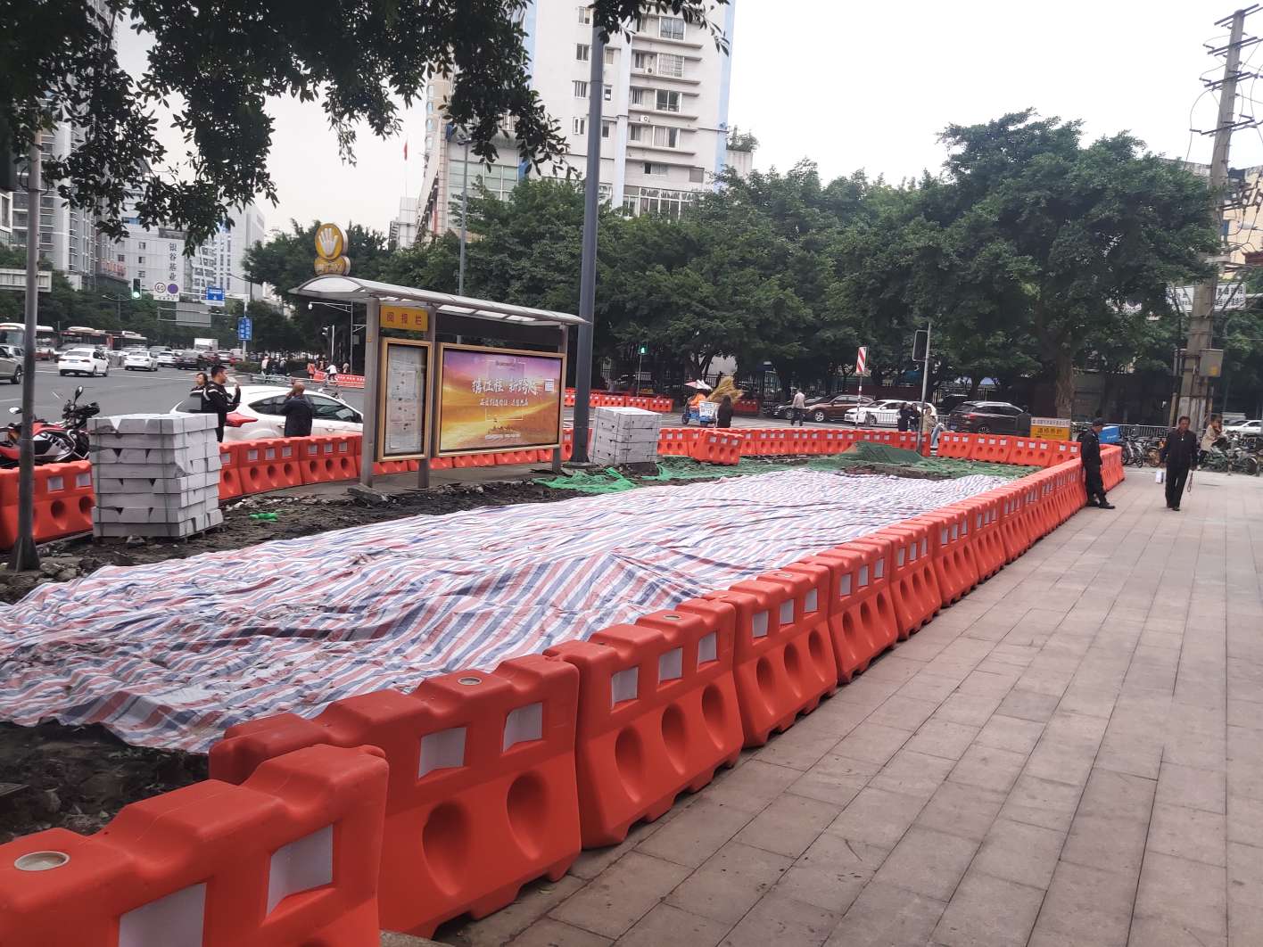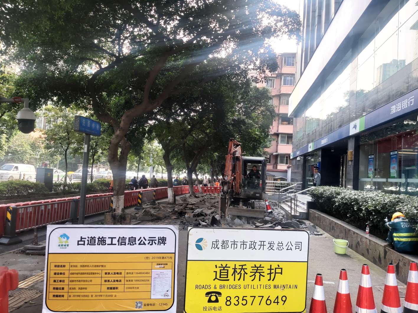 由于该工程地处成都市一环路内,道路车流量、人流量较大,对现场施工组织要求较高。公司严格执行安全文明施工管理规范,科学组织施工,控制施工质量,稳步推进施工进度。施工期间,通过在施工区域预留人行通道、设置安全防护设施等措施,有力保障了施工区域的道路畅通和行人安全;同时,通过优化施工方法和工艺,减少现场扬尘、噪声污染,最大限度减轻对周边商户和居民的影响。