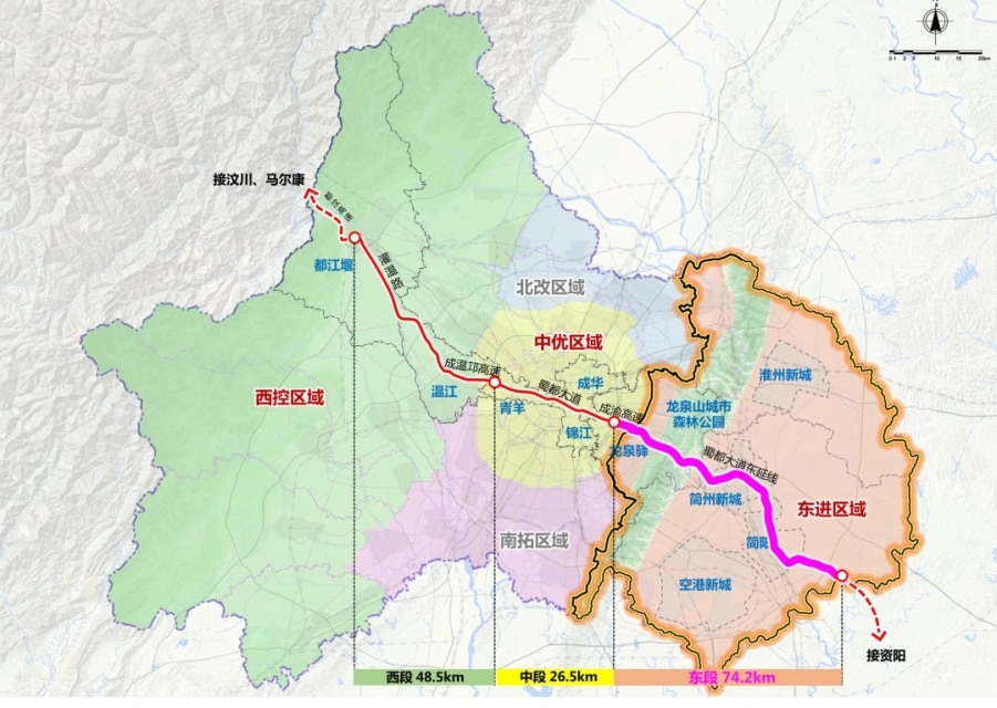 东西城市轴线(东二环-龙泉驿区界)工程作为连接中心城区与东部城市新区的重要廊道,也是保障2021年成都大运会交通需求的重要工程,东轴线项目着力构建快速交通+快速公交+慢行绿道系统为一体的城市功能轴线。