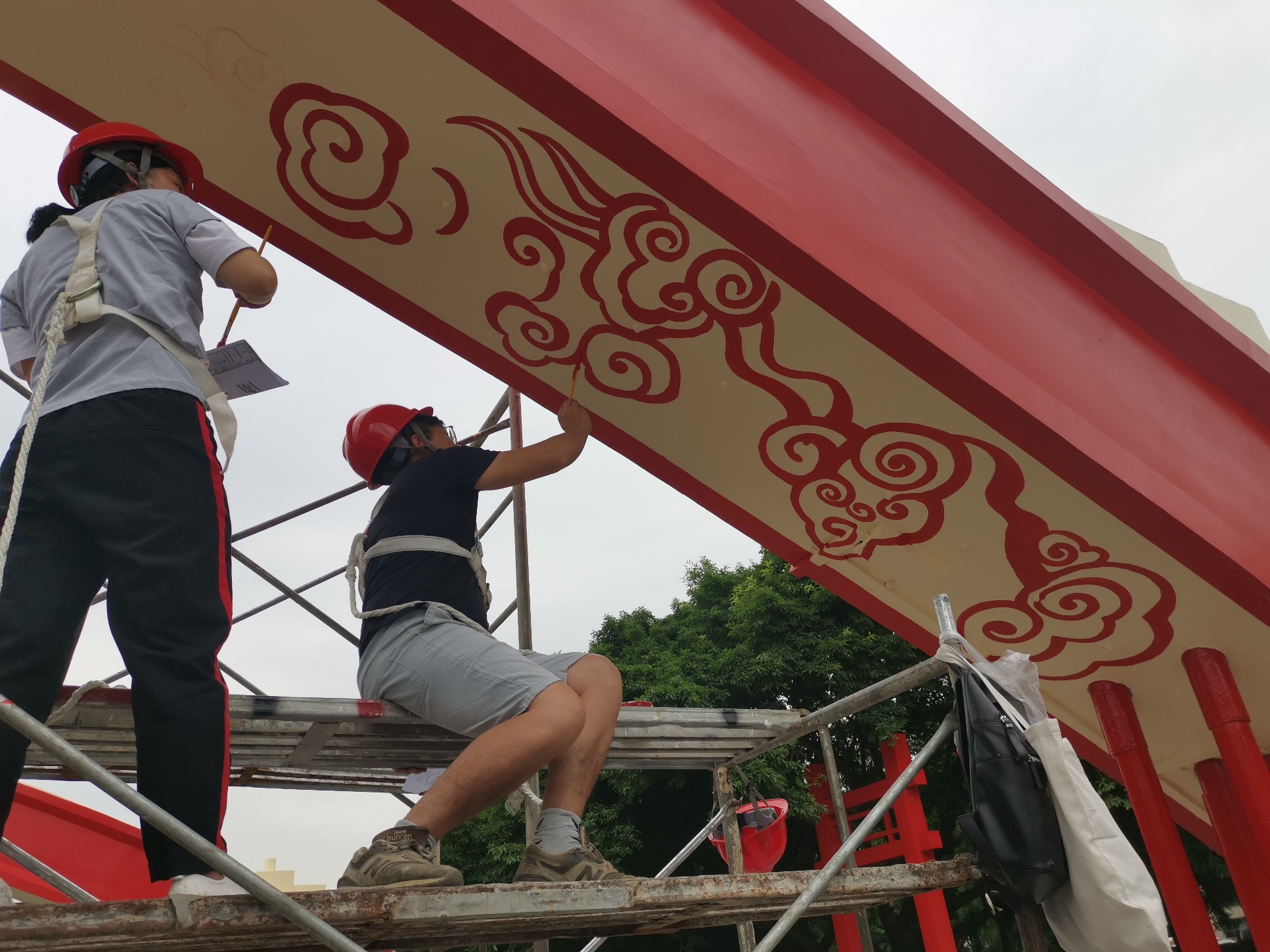 由于使用年限较长,南河桥出现掉色、脱皮等现象,严重影响了城市美观。在市道桥监管中心的指导下,我公司(监管三所)对南河桥桥梁拱肋涂装、拱底、木牌坊及栏杆等部位实施了整体提升美化,涂装总面积约1100平方米。