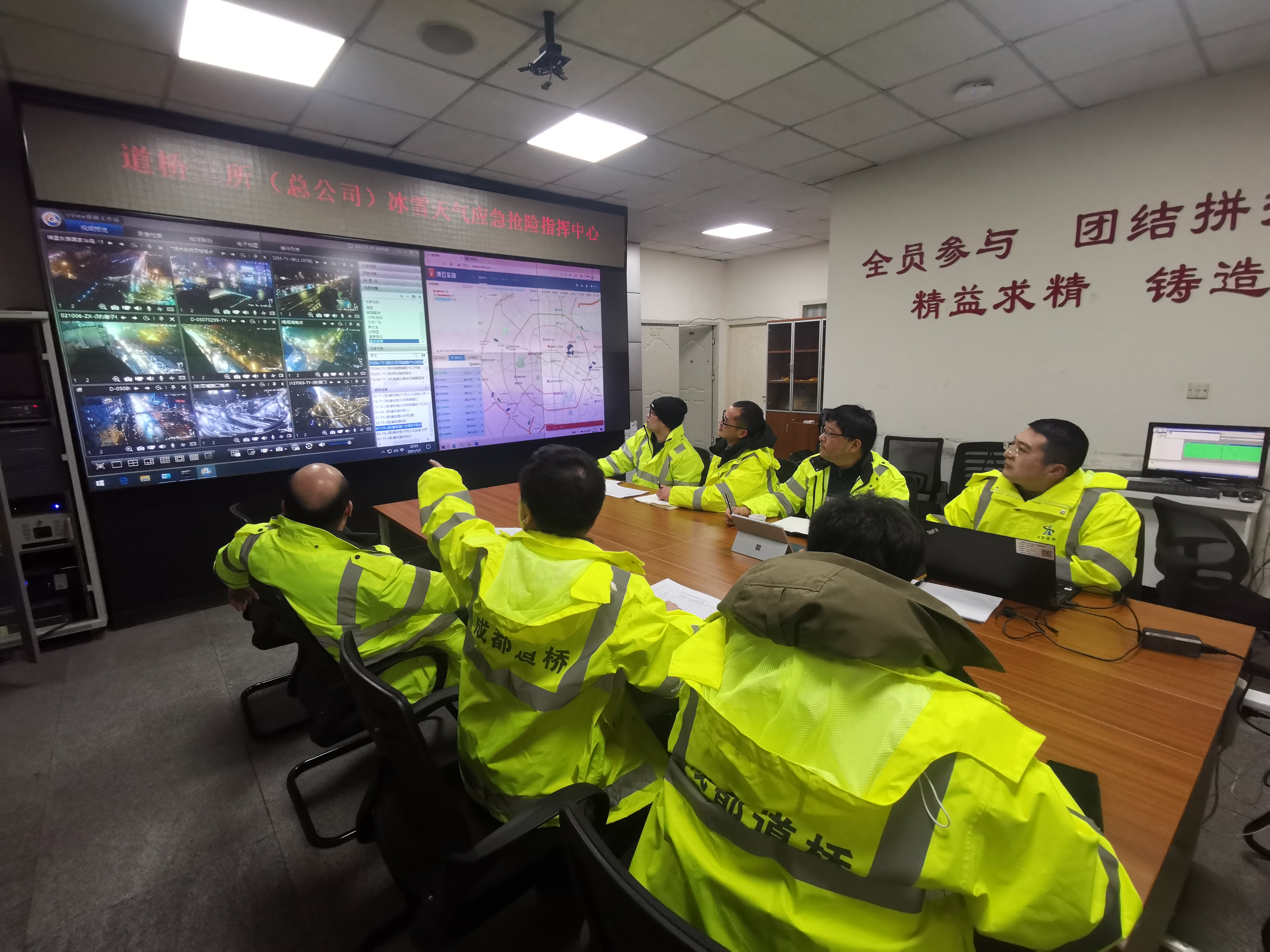 为打赢这场“冰雪天气保卫战”,更好地调度和协调统筹应急抢险工作,总公司(监管三所)领导班子齐上阵。在指挥中心,全市主要道路的画面,实时投放在大屏幕上,指挥小组根据气象信息,研判当前可能出现冰冻的道路;同时,根据城市管理部门传来的信息,实时指挥全市的巡查抢险队员。不管哪里出现险情,都能及时赶到现场。