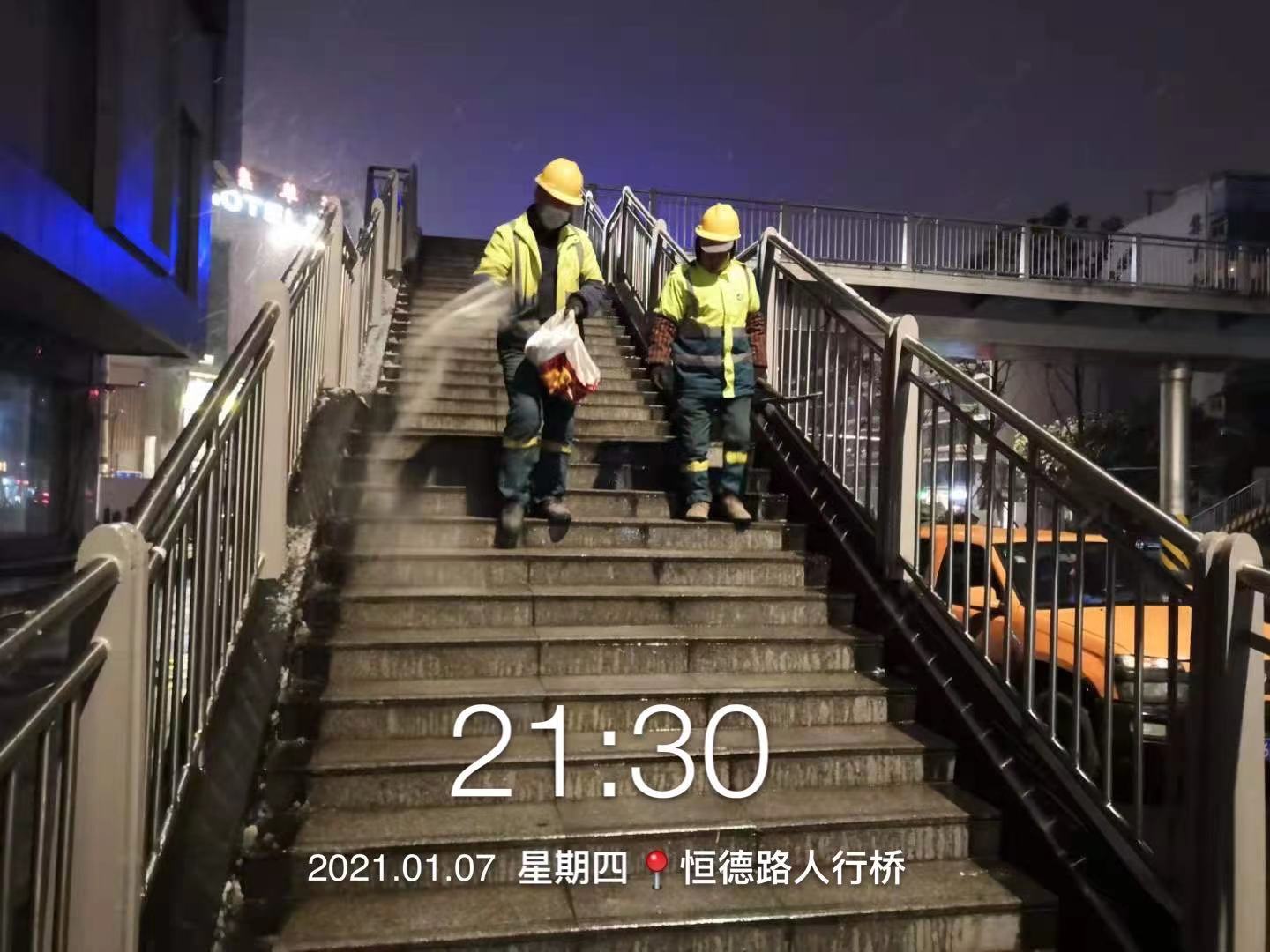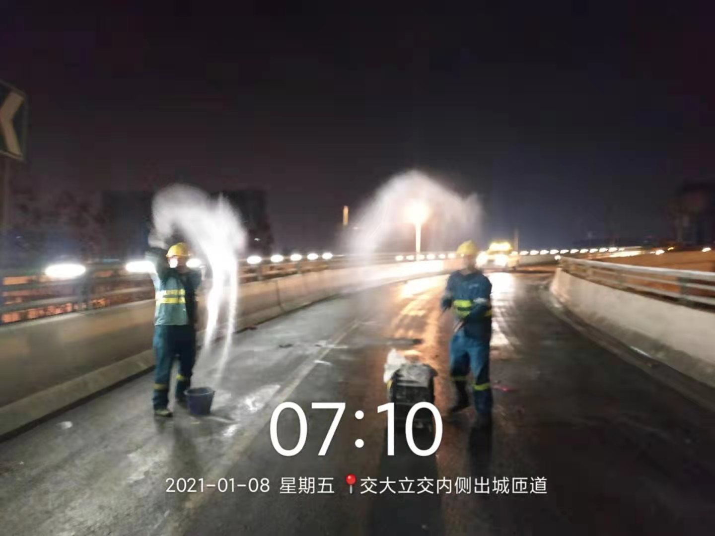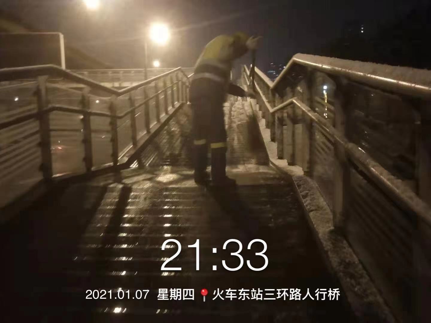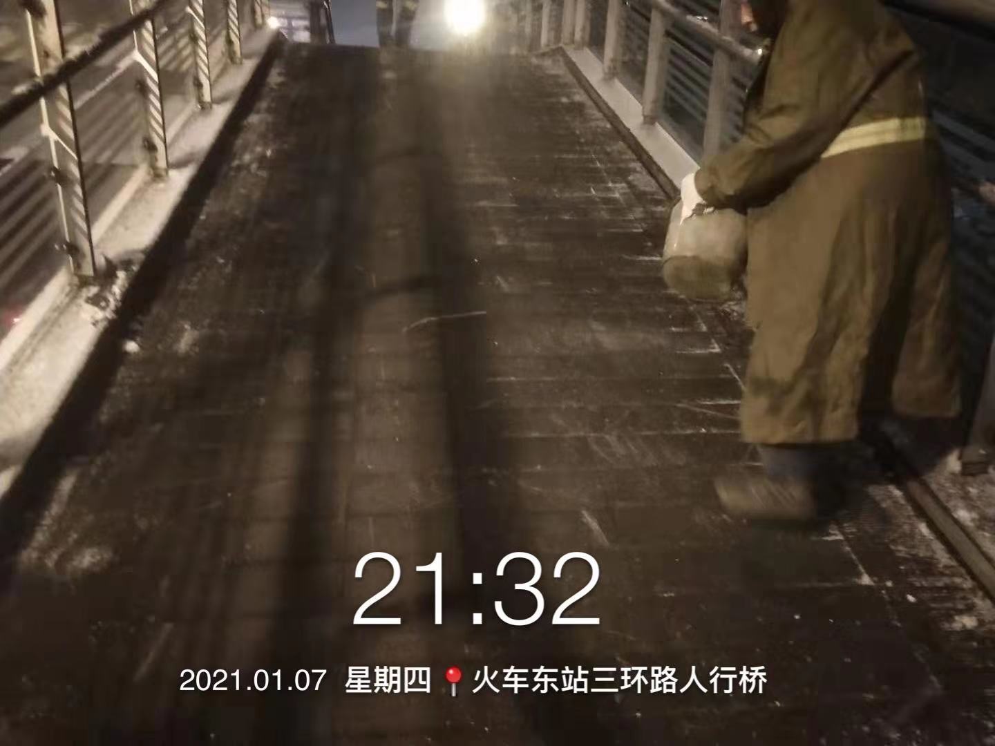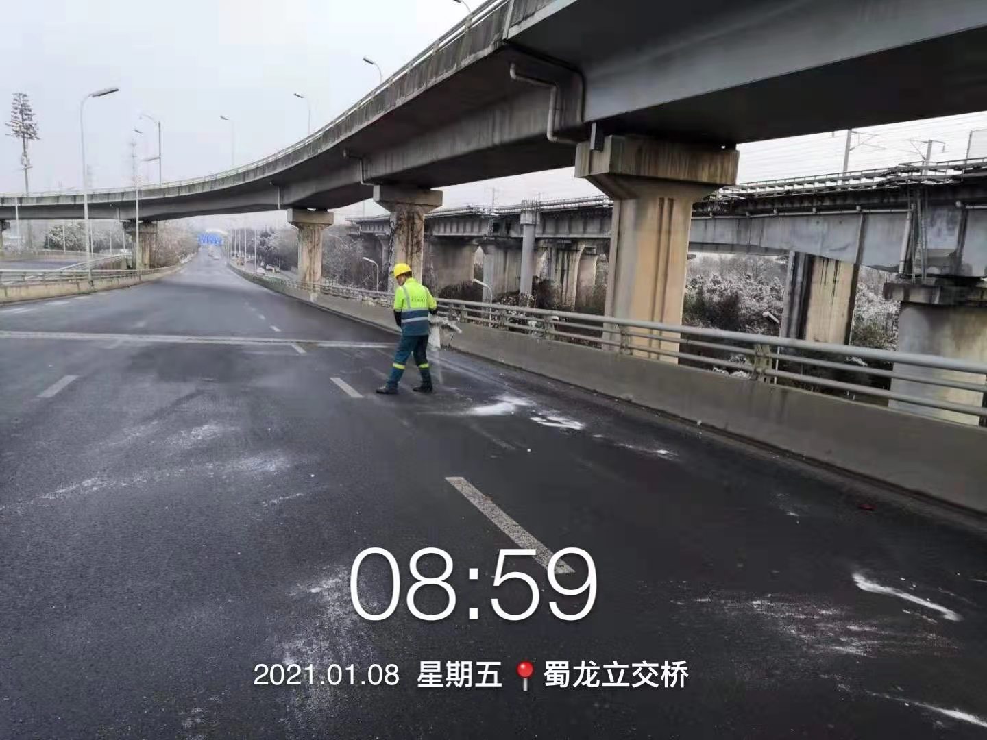 晚上11时,领导班子兵分两路,分别前往结冰情况较严重的永丰立交桥和迎晖路跨线桥进行现场指挥。