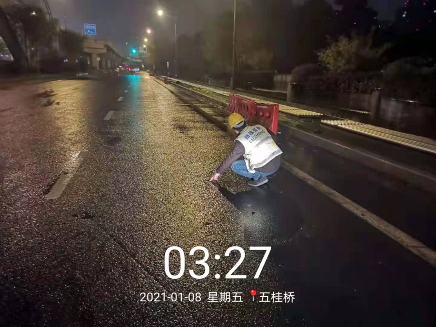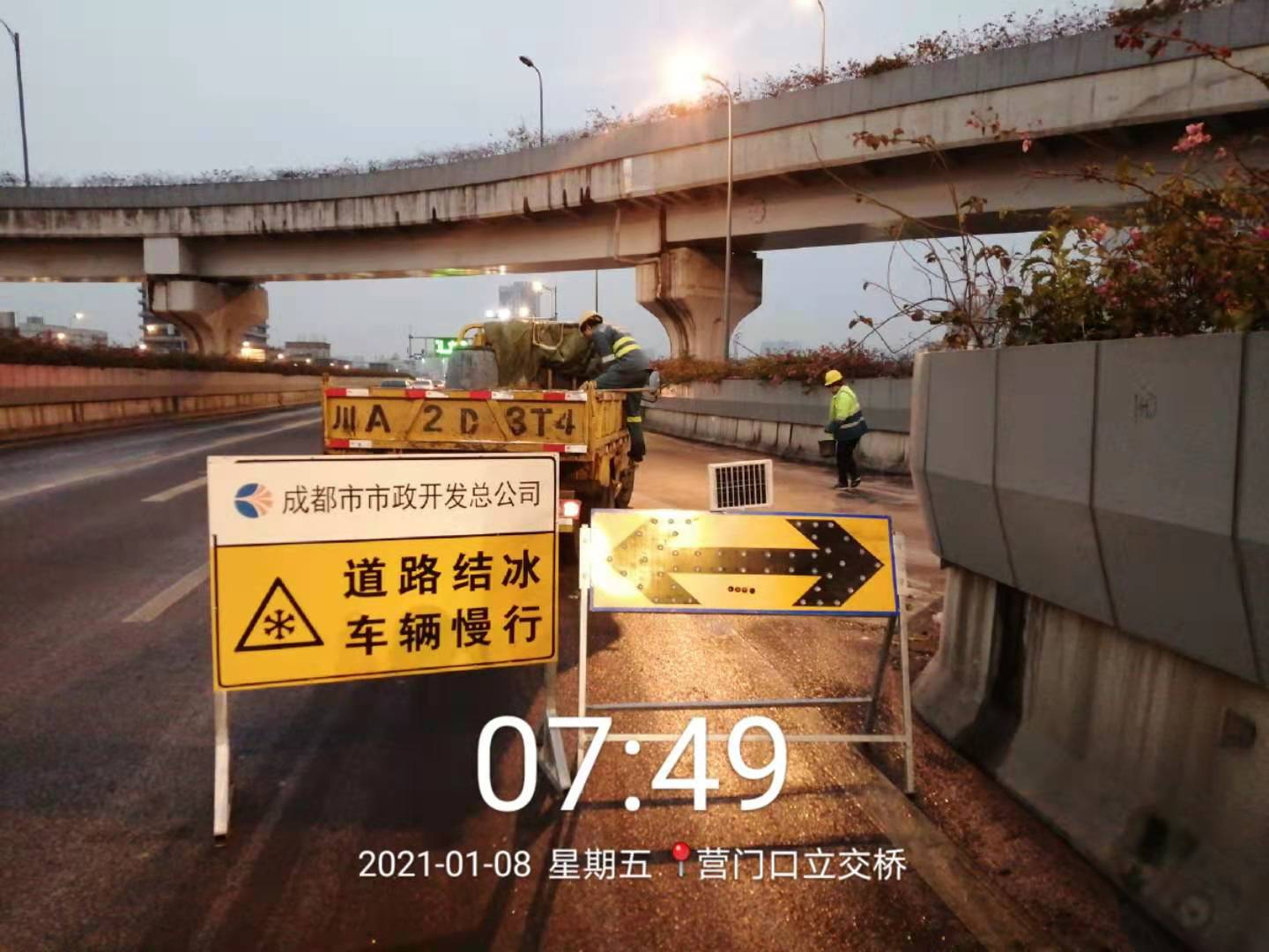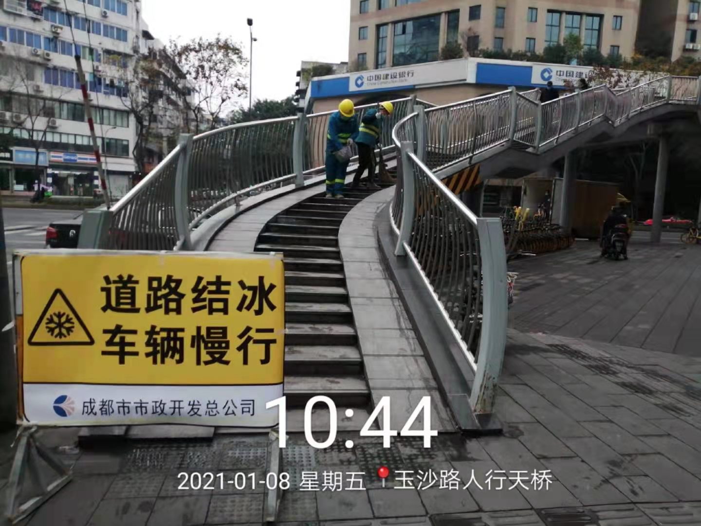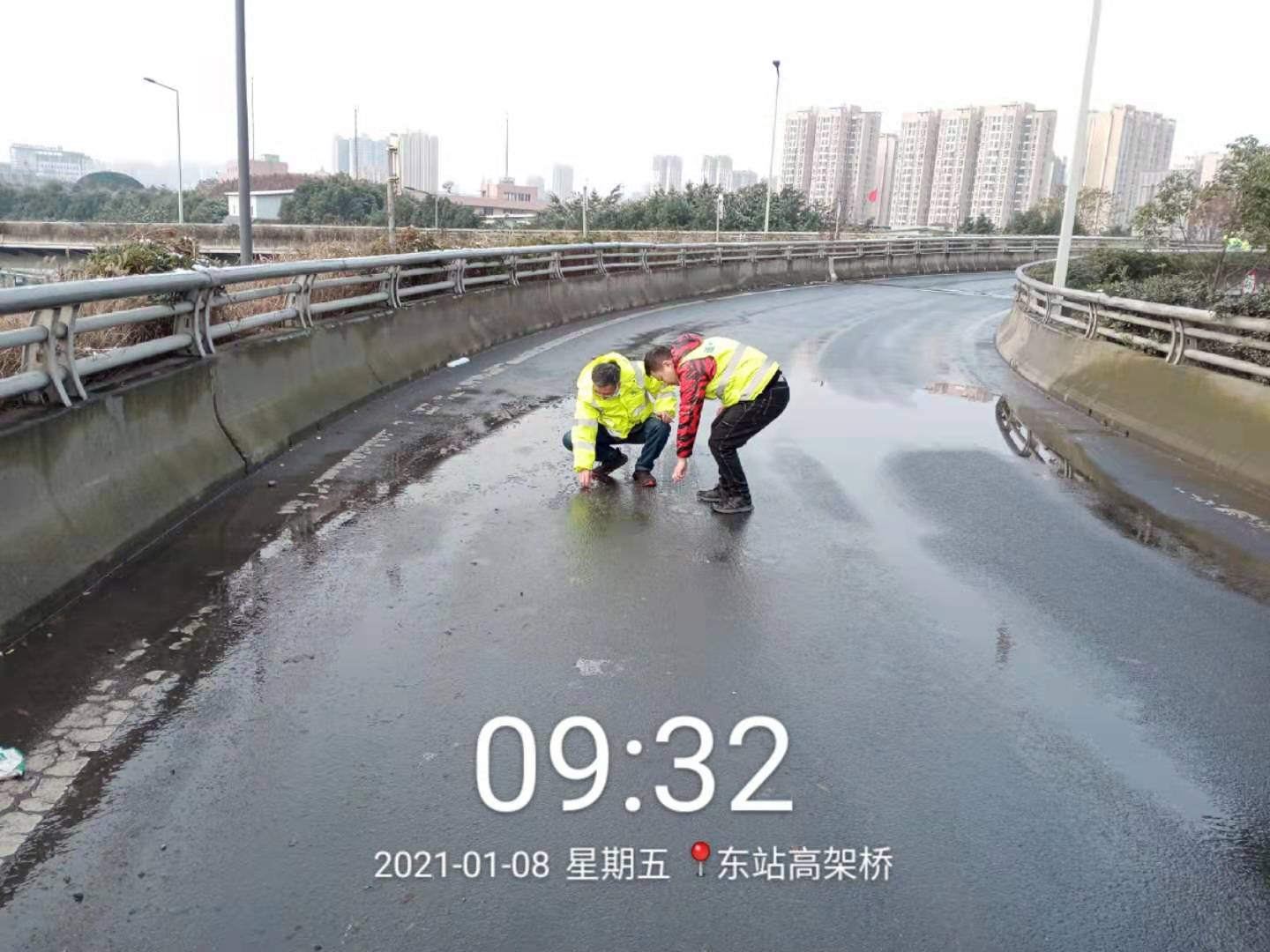 晚上11时,领导班子兵分两路,分别前往结冰情况较严重的永丰立交桥和迎晖路跨线桥进行现场指挥。
