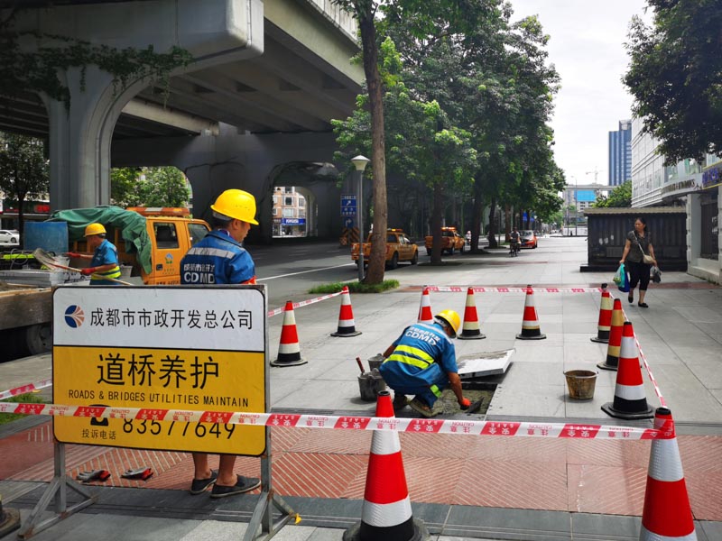 作为该设施的维养单位,我司建立了完备的养护管理制度,专职巡查人员对设施进行一天一巡查,通过将现场病害信息上传至成都市城市道桥管理信息系统,维修人员、现场管理人员根据系统记录导航至病害点位开展维护工作。