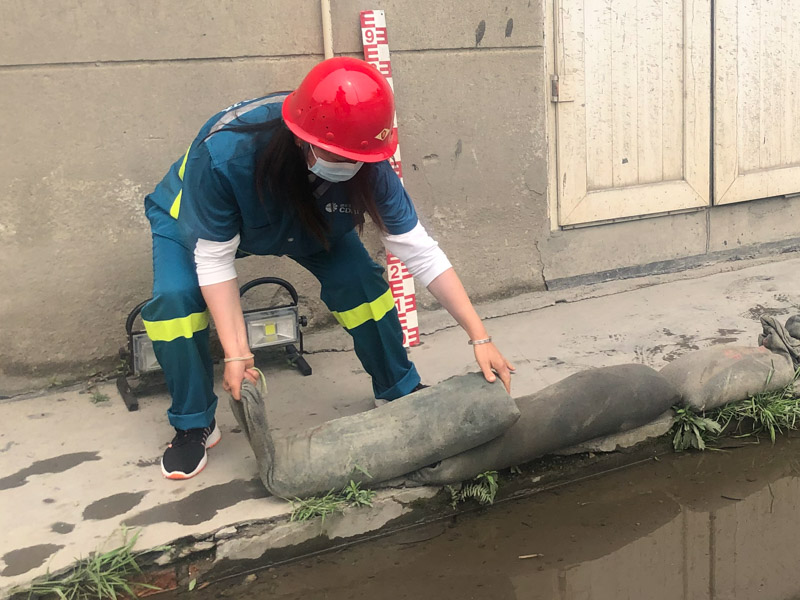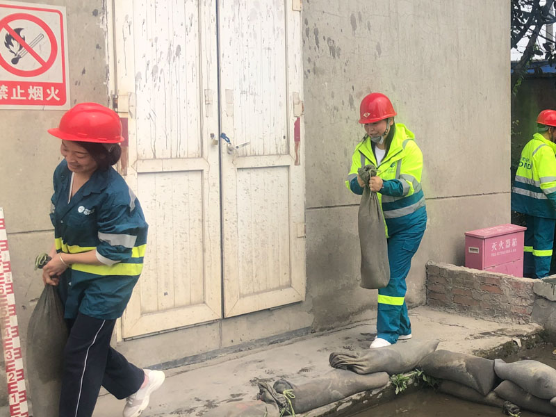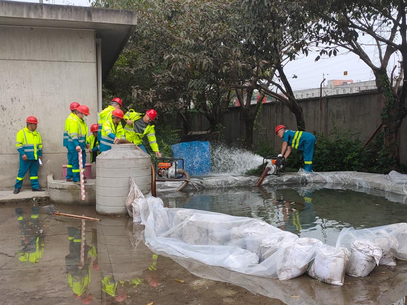 消防演练结束后,紧接着进行了防汛演练。发现险情后,防汛指挥部根据水位深度,立即启动“三级响应”流程。参演人员按照规定流程积极响应,组员间分工明确、配合默契,防汛器械迅速安装,防汛沙袋布设到位,积水抽排迅速完成,整个防汛抢险流程一气呵成。