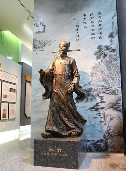 赵抃(1008~1084) 字阅道,宋衢州西安(今浙江衢州市)人。北宋时期名臣。赵抃在朝弹劾不避权势,时称“铁面御史”。 平时以一琴一鹤自随,为政简易,长厚清修,日所为事,夜必衣冠露香以告于天。“吾志如此江清白,虽万类混淆其中,不少浊也”是赵抃“清白文化”思想的最好诠释。
