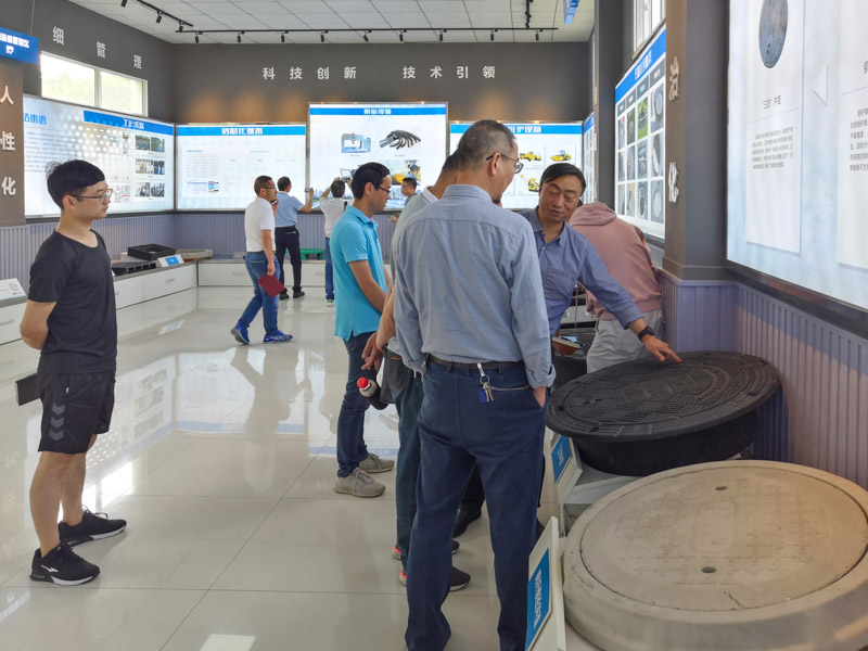 于惠志一行首先参观了井盖基地宣贯展示区,详细了解了井盖基地的建设过程、井盖材质的发展变化、井盖病害的治理流程、井盖管理的科技创新、地方法规和行业标准制定等井盖管理相关内容。参观结束后,双方以座谈的形式就城市井盖监督管理体制机制建设、运行管理方式、技术措施及创新,城市井盖“一盖一编号、一井一档案”的基础数据建设以及日常维护标准,“智慧市政”井盖管理远程监测系统建设等方面的经验和做法进行了深入交流。