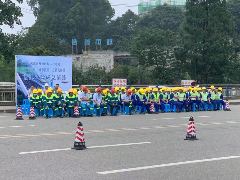 5月19日上午,成都市双流区城市管理局组织开展2021年城市道桥、城市照明、公路及桥梁防汛抢险应急演练,总公司第七项目部作为参演单位参加了本次演练。