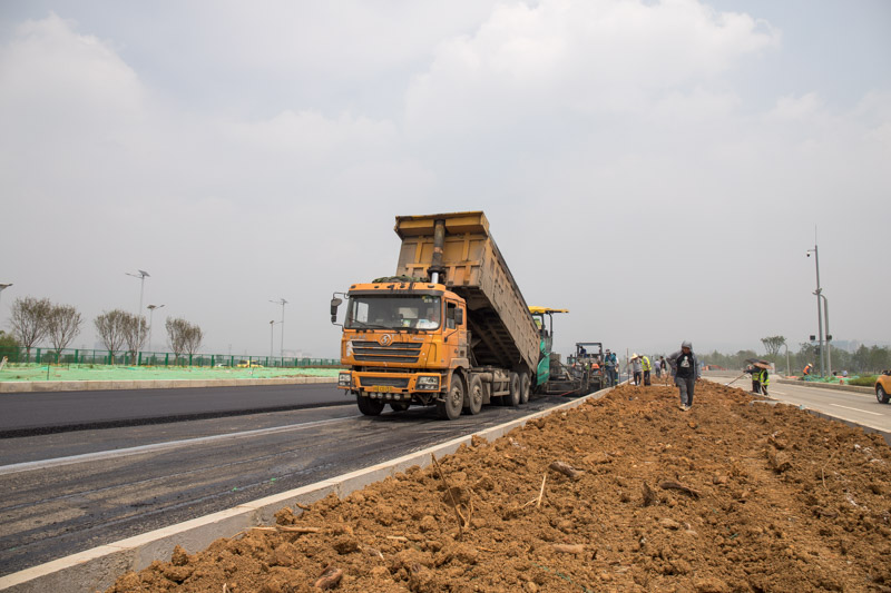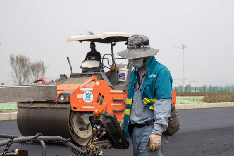 炎炎夏日,酷暑难当。近日的高温,对正在进行沥青摊铺的一线员工来说,无疑是一个严峻的“烤验”。