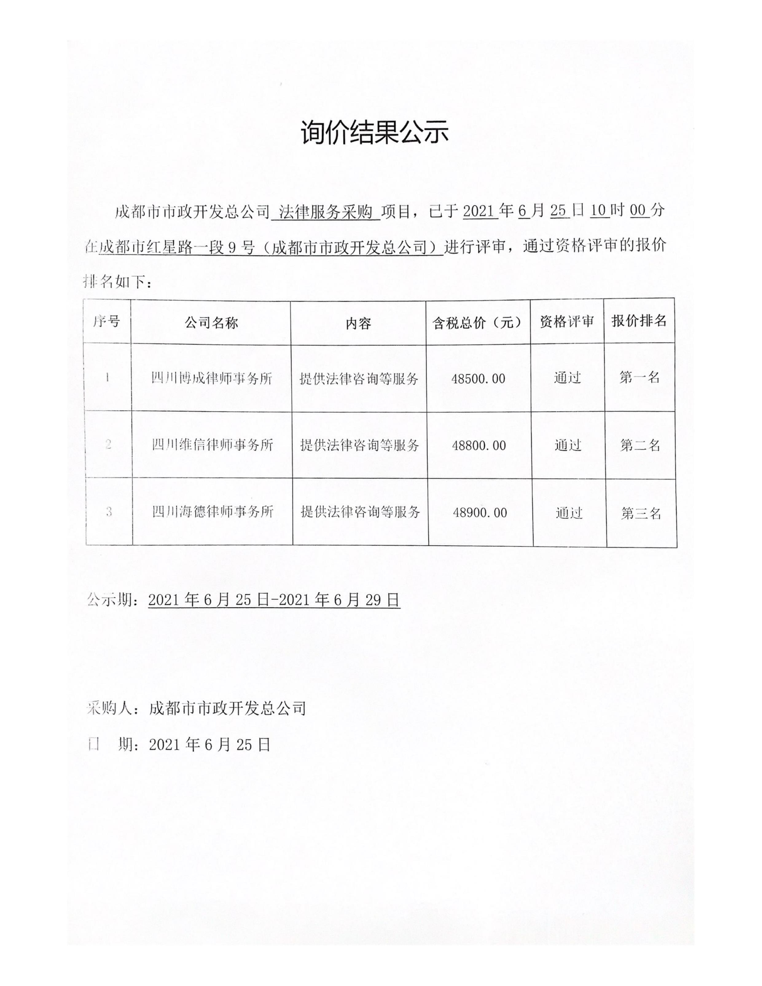 jS333金沙线路法律服务采购项目询价结果公示