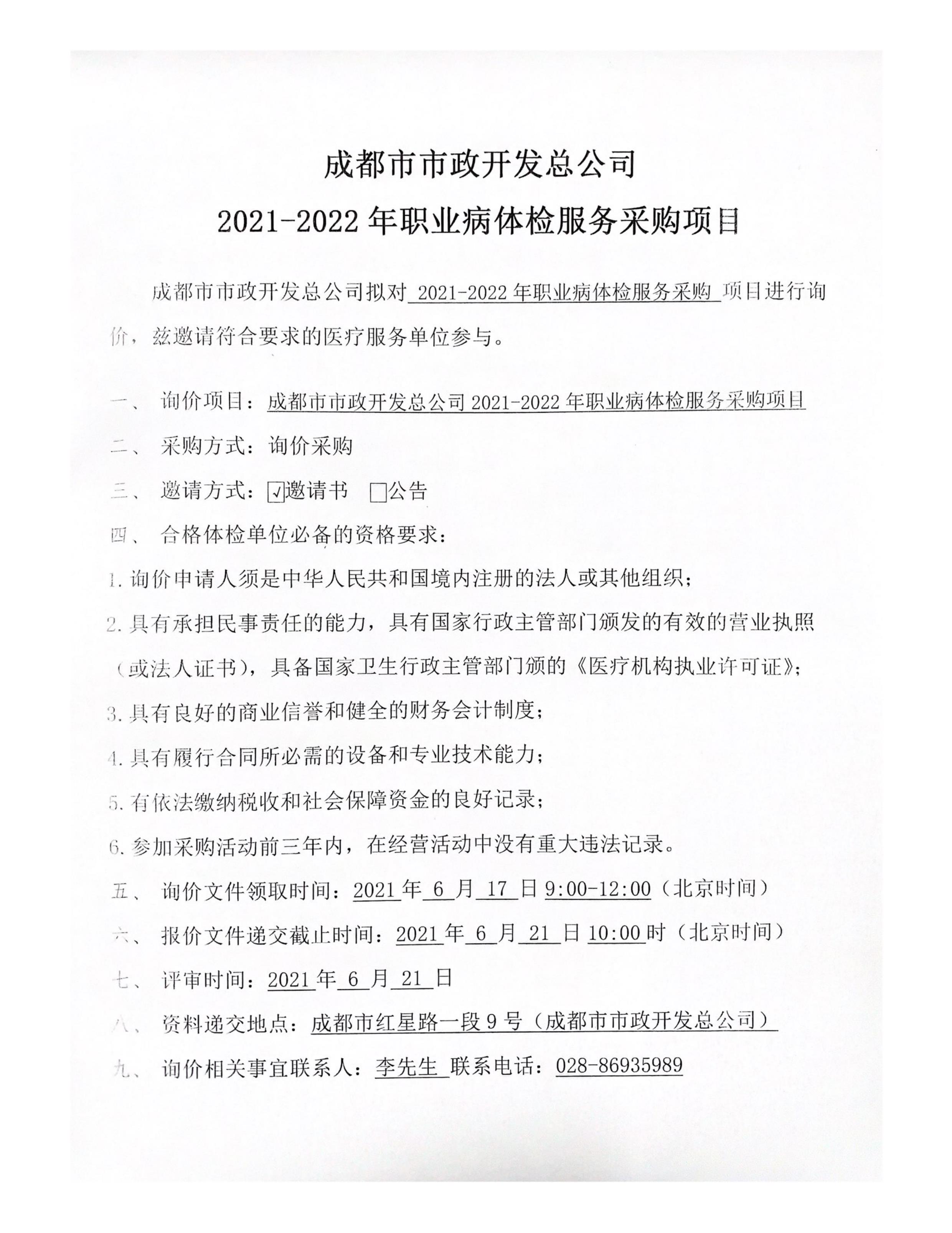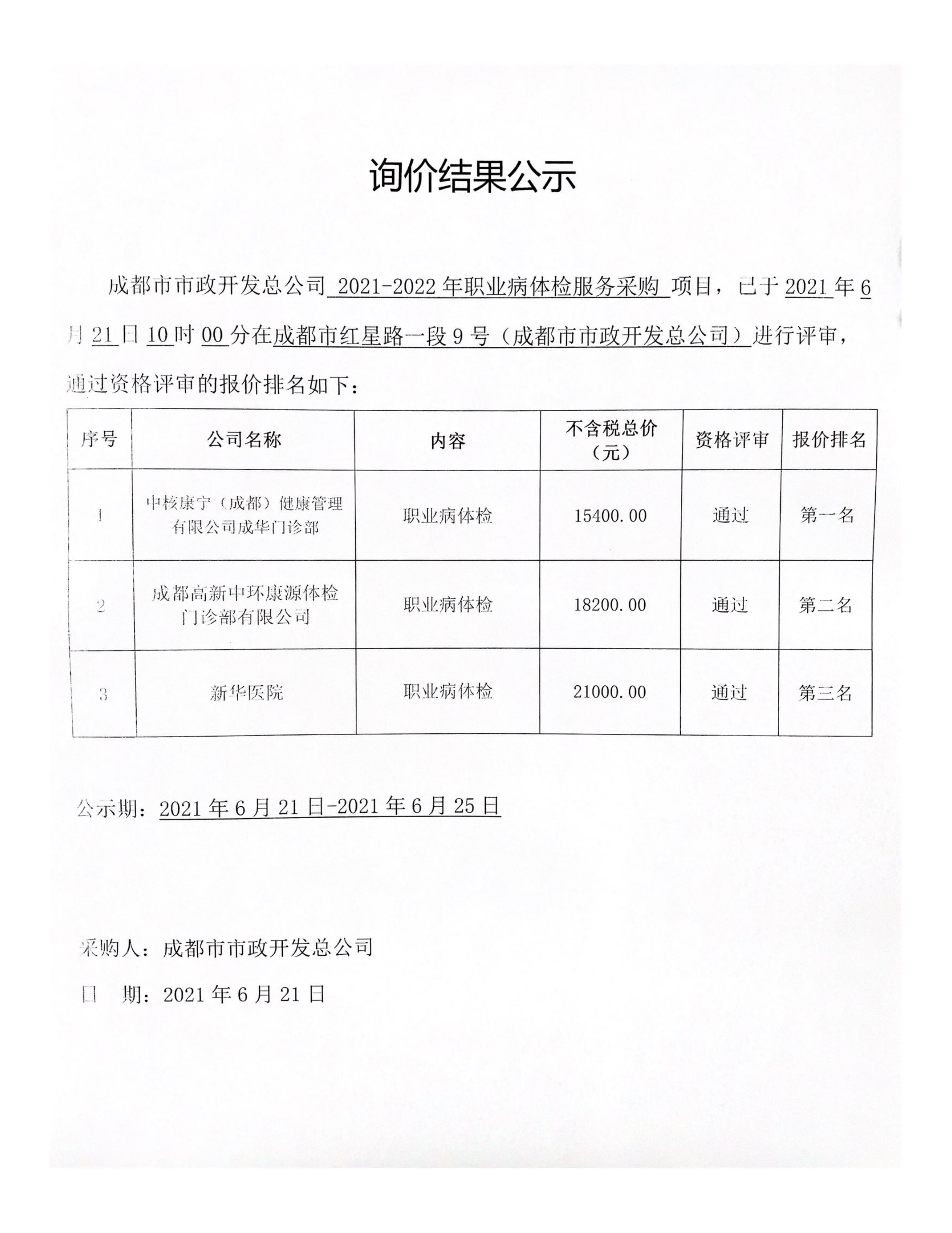 jS333金沙线路2021年-2022年职业病体检服务采购项目询价结果公示