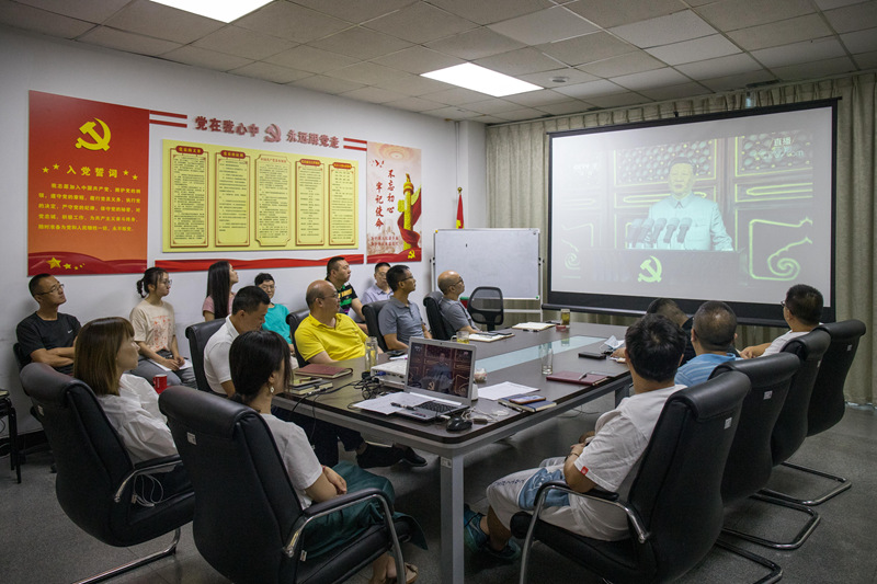 总公司(监管三所)全体党员、部门负责人一起观看建党100周年庆祝大会的实况转播,认真聆听了习近平总书记在大会上的重要讲话。习近平总书记铿锵有力的话语让在场人员充满了力量,让新老党员们都精神为之一振。