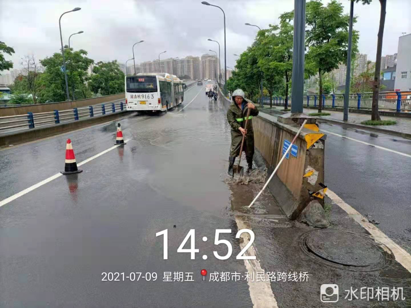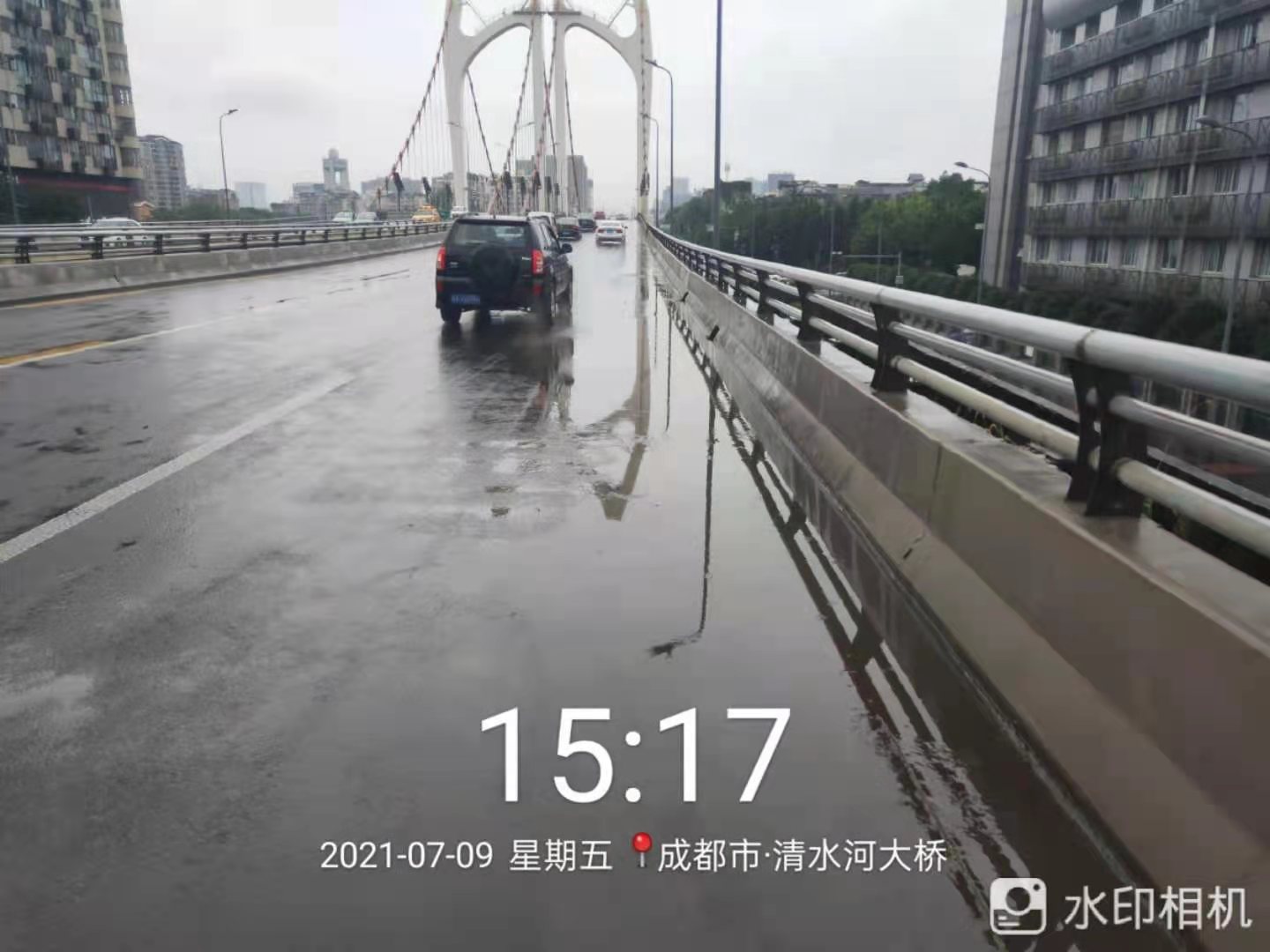 13时10分,成都市气象台发布第9号暴雨黄色预警信号,青羊区、金牛区、成华区、武侯区和锦江区出现短时强降水,如此急促而迅猛的暴雨,市区部分路面无法对雨水进行顺畅排泄,个别道路桥梁积水严重,造成车辆拥堵缓行。