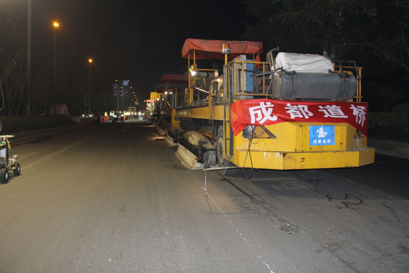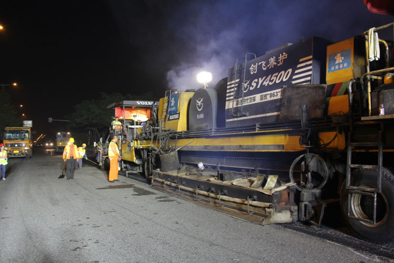 公司在道桥处的正确领导下,对市政养护领域主动探索,积极引入新技术,提高养护水平。通过技术方案、现场组织方案讨论,新旧材料对比实验等施工前期充分准备,于9月14日正式开始在北星大道绕城段(入城方向)进行沥青面层就地热再生养护作业。此次运用沥青就地热再生养护技术在成都市区尚属首次。所谓就地热再生,就是现场使用高技术含量的热再生机组加热软化、耙松原有的旧沥青路面,通过机组加入适当比例的再生剂和改性沥青,收集到搅拌锅中,同时添加部分新拌沥青混合料,拌和均匀,然后使再生机组按照路面高程设计要求进行摊铺,最后由压路机组对铺摊后的路面进行压实,使再生路面的路用性能达到设计要求。沥青就地热再生施工技术可100%使用地面原有沥青砼,减少建筑垃圾的产生,达到资源循环利用,节约资源和减少污染的目的。其铣刨、现场拌合、摊铺、压实等工序流水作业、一次成型,和传统作业相比,缩短了各工序的施工间隔,减少对交通影响,降低扬尘污染。