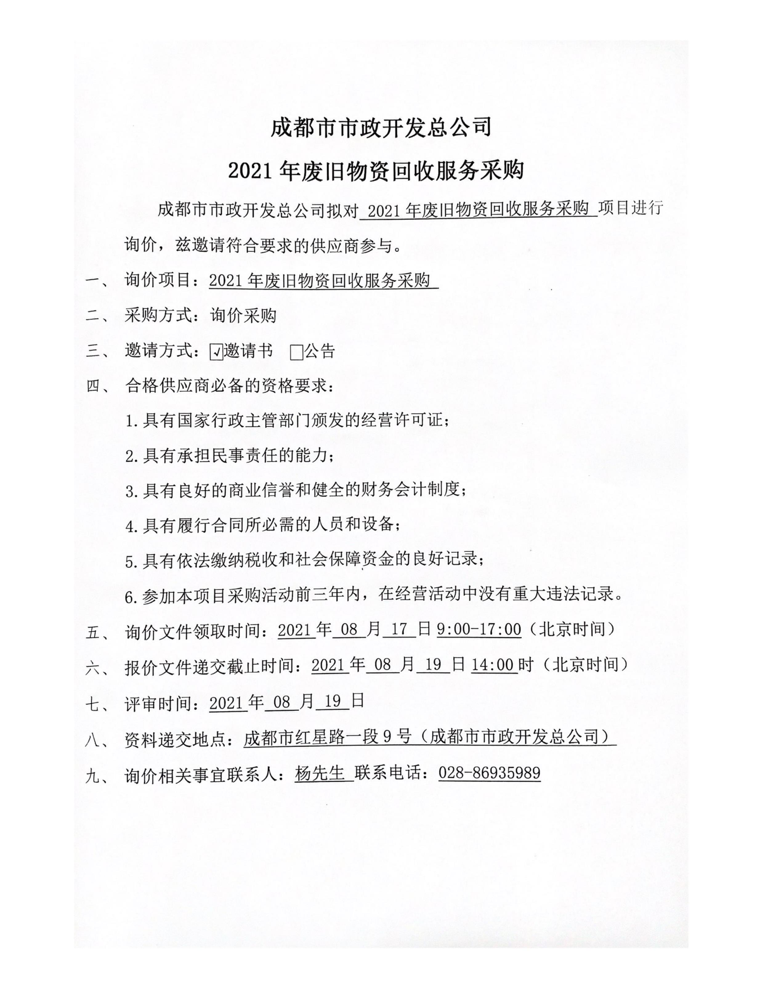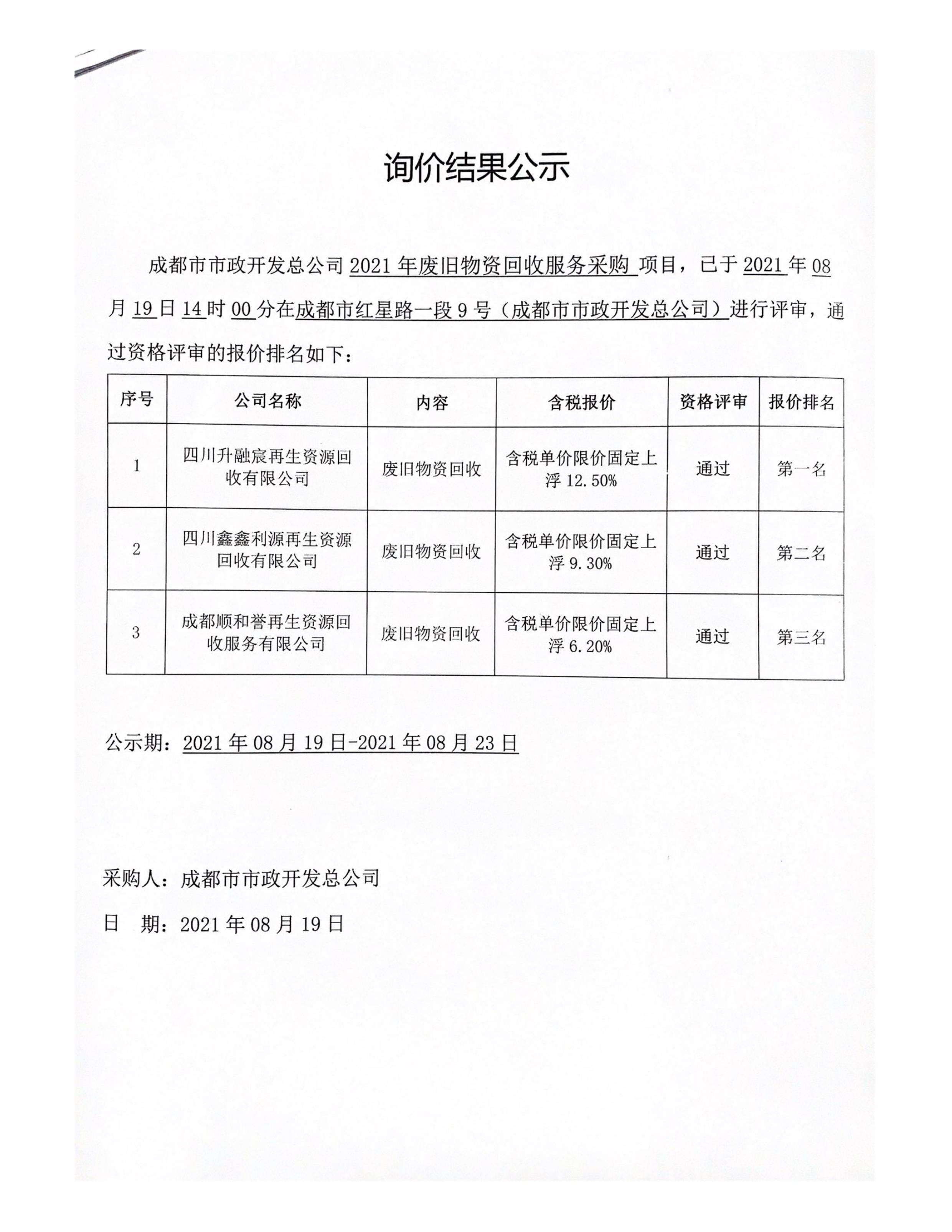 jS333金沙线路2021年废旧物资回收服务采购询价结果公示