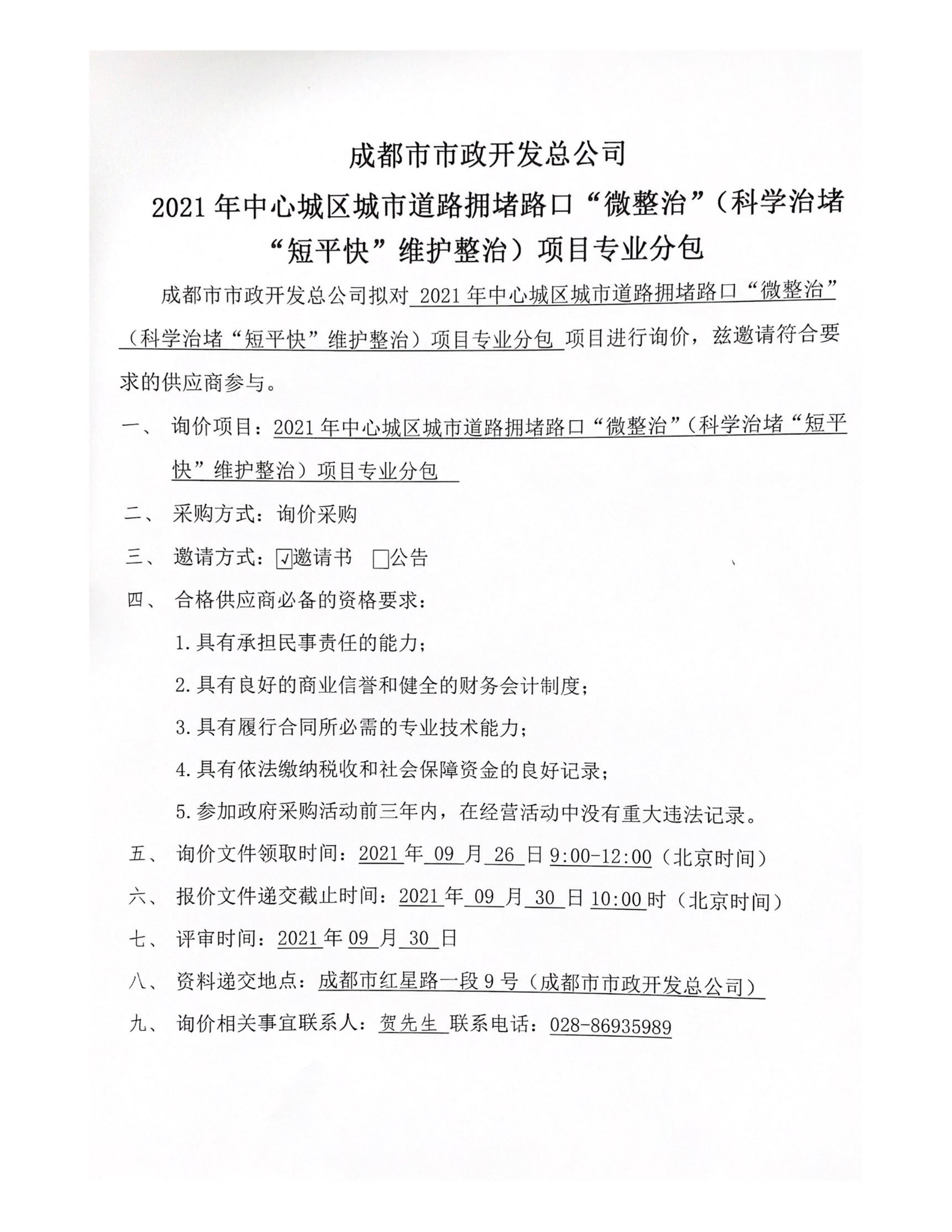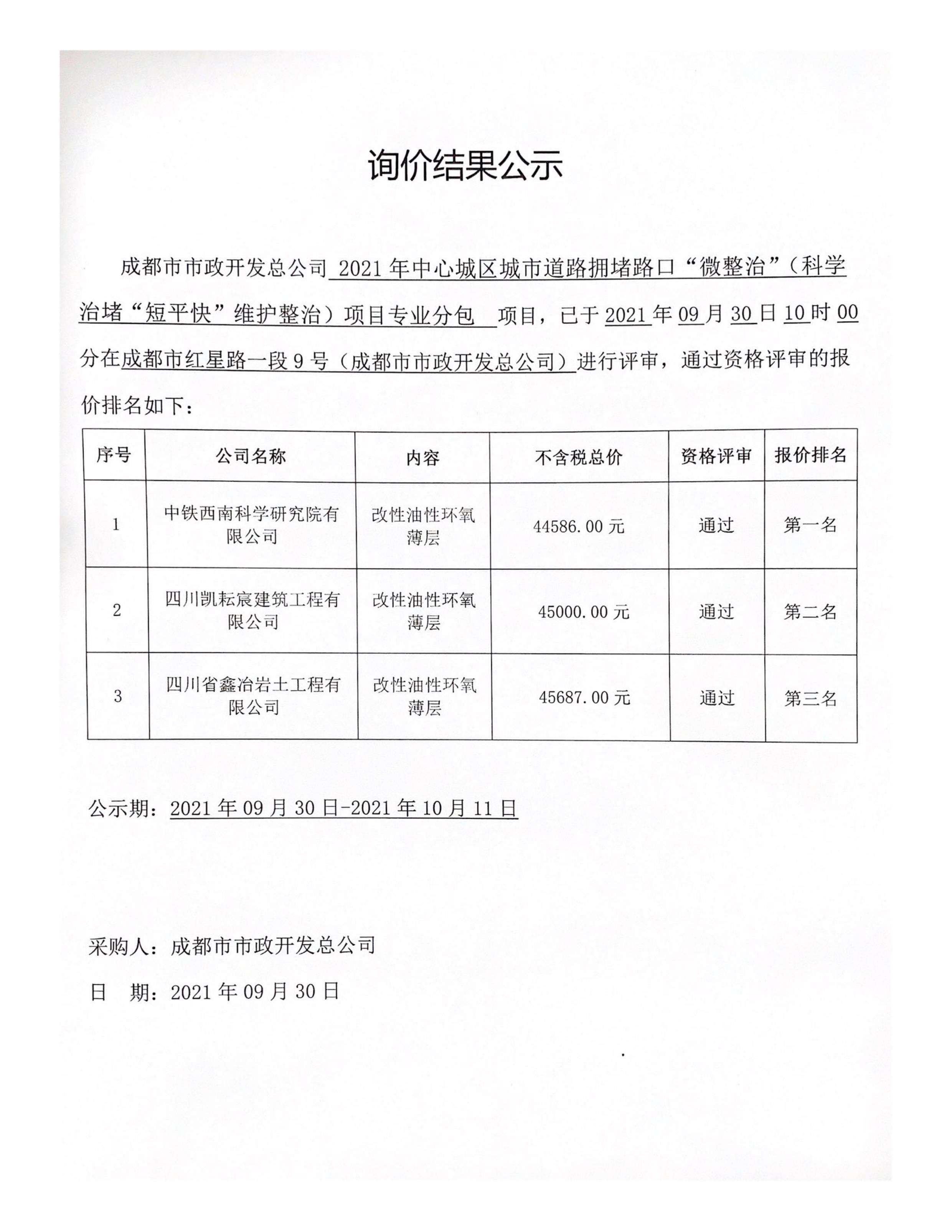 jS333金沙线路2021年中心城区城市道路拥堵路口“微整治”(科学治堵“短平快”维护整治)项目专业分包询价结果公示
