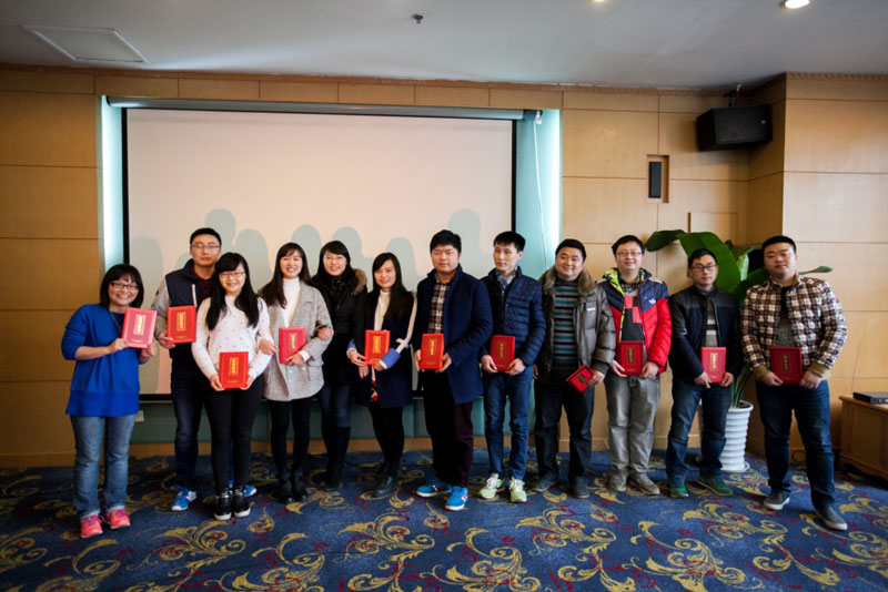 下午,2015年评优表彰大会欢声笑语、其乐融融,本年团队评优共分类设项5种,各部门针对自身特点分类展示成绩、角逐奖项。有的播放视频、有的放映幻灯片、有的演讲游说、各显其力;有的以数据说话、有的以文字动人、有的以搞笑博氛围,大显神通。通过团队展示,不仅形象梳理了2015年公司各部门的各项业绩,还大大展现了公司和谐奋进、团结拼搏的团队精神。随后,公司领导向2015年工作中涌现出的26名优秀工作者和获得表彰的部门颁发了荣誉证书,并向他们表示祝贺。通过表彰先进,进一步激发了各部门及公司职工的进取精神。
